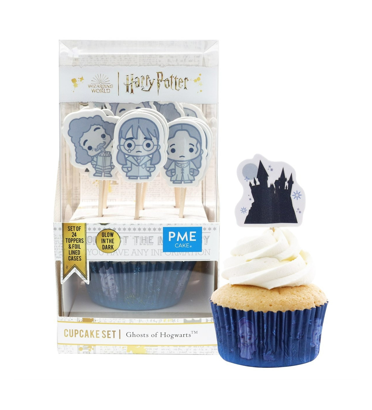 24 Cápsulas Cupcakes + 24 Cake Toppers Fantasmas de Hogwarts PME