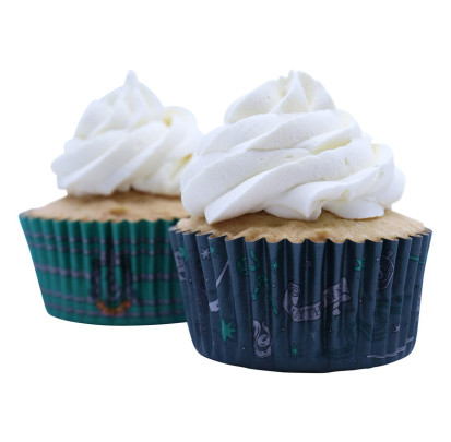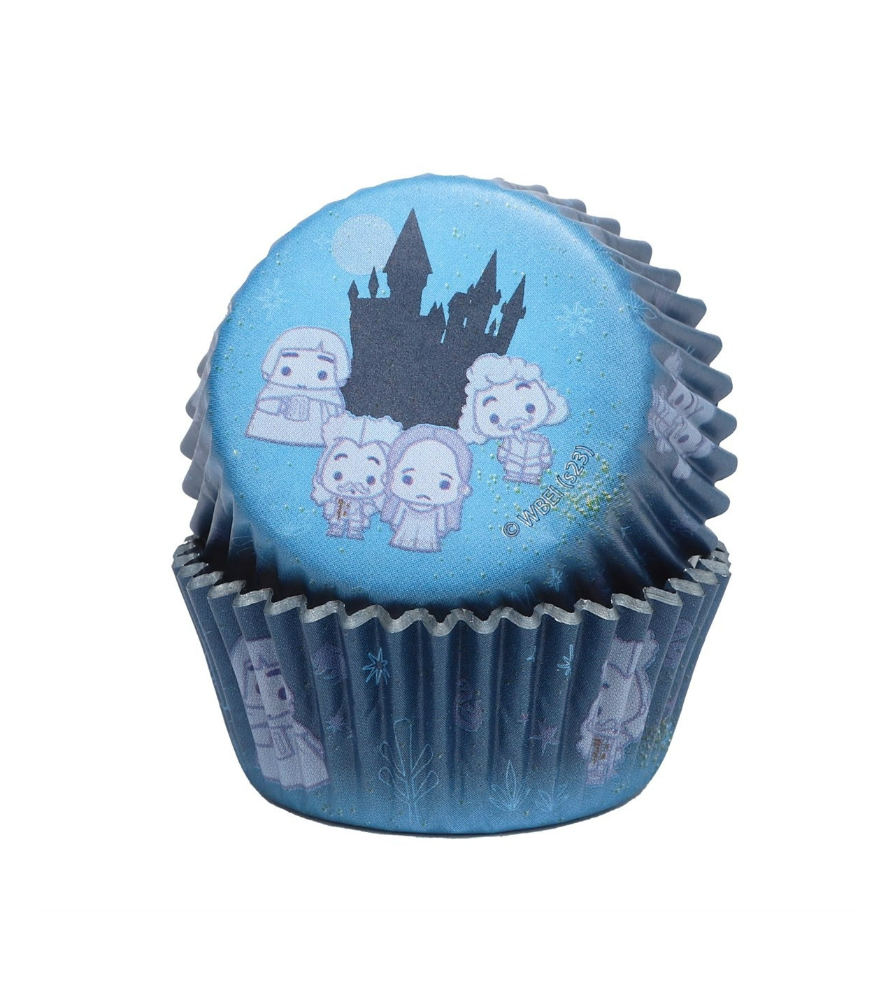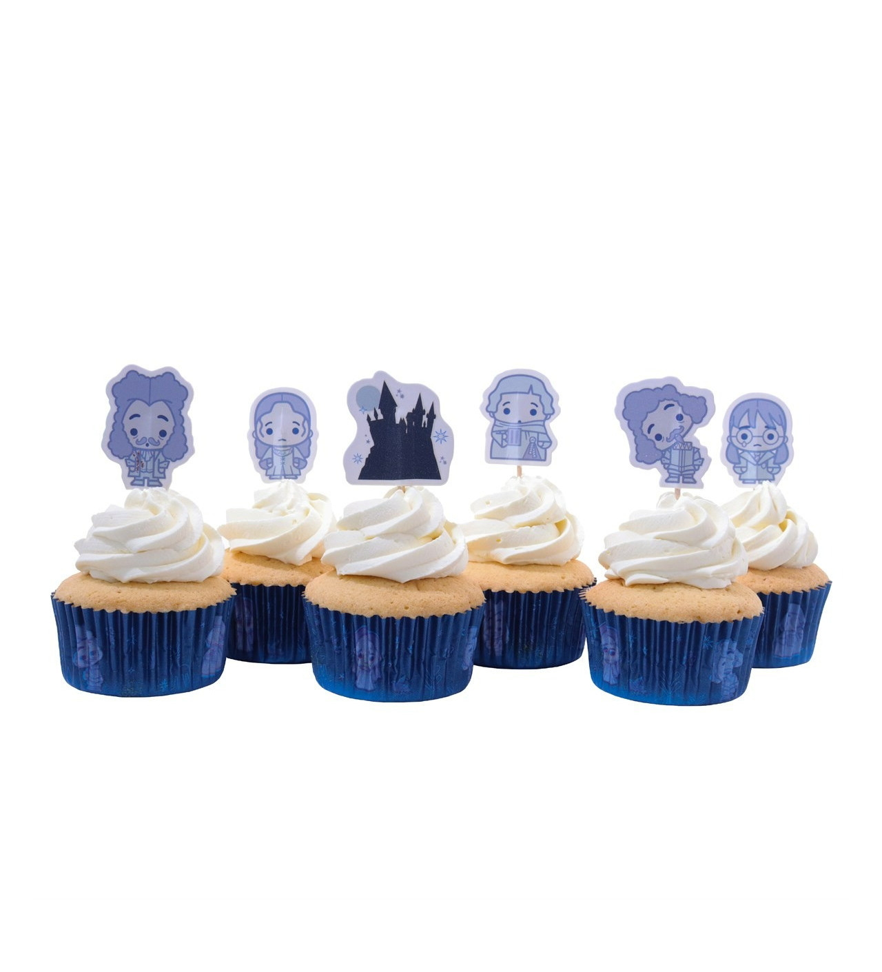 El set para cupcakes incluye 24 cápsulas de papel para muffins y 24 cake toppers Harry Potter, con los que podrás transformar tus creaciones en auténticas apariciones mágicas. Además, presentan misteriosos motivos en negro y azul inspirados en los espíritus que recorren los pasillos de la escuela de magia y hechicería.
