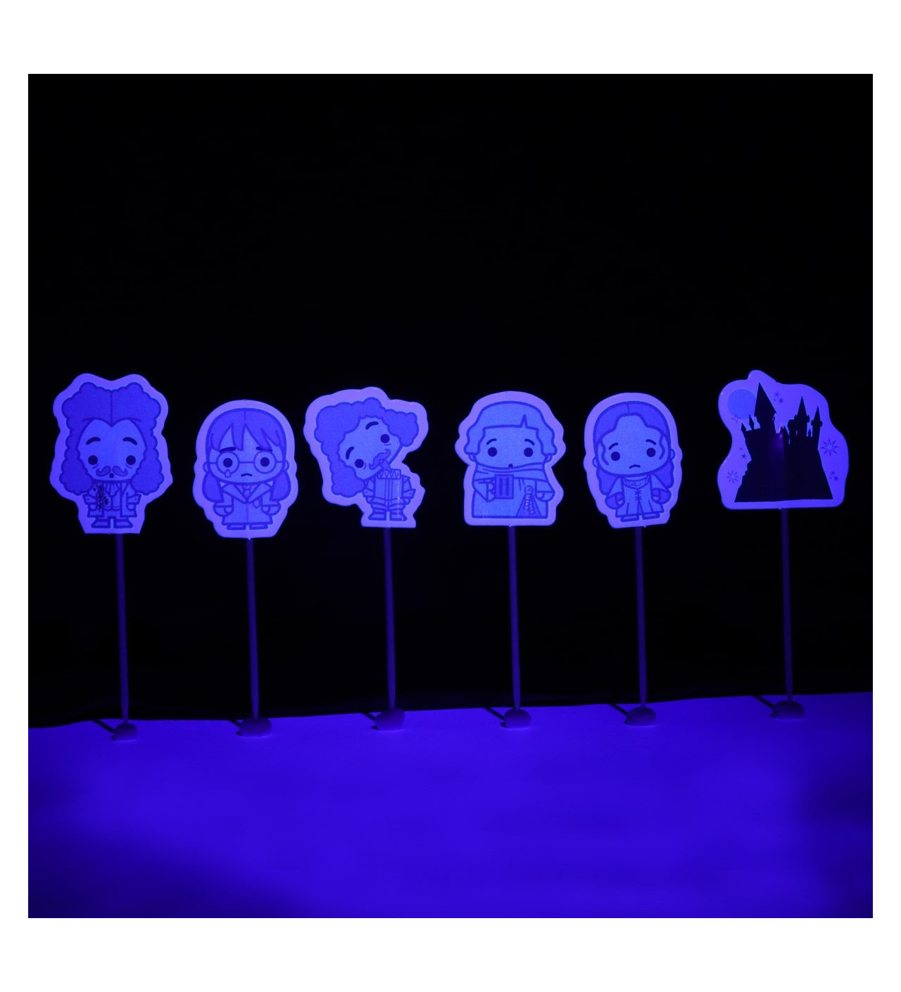 Los moldes de papel para magdalenas están fabricados en papel con recubrimiento de aluminio y cuentan con un diámetro de 5,2 cm, lo que les permite mantener perfectamente su forma durante el horneado. Por su parte, los cake toppers representan a algunos de los fantasmas más icónicos de la saga, como Myrtle la Llorona, el Barón Sanguinario, Nick Casi Decapitado, Helena Ravenclaw, el Fraile Gordo y el castillo de Hogwarts. Cada adorno para cupcake mide 4,2 cm y brilla en la oscuridad, creando un efecto mágico realmente sorprendente.