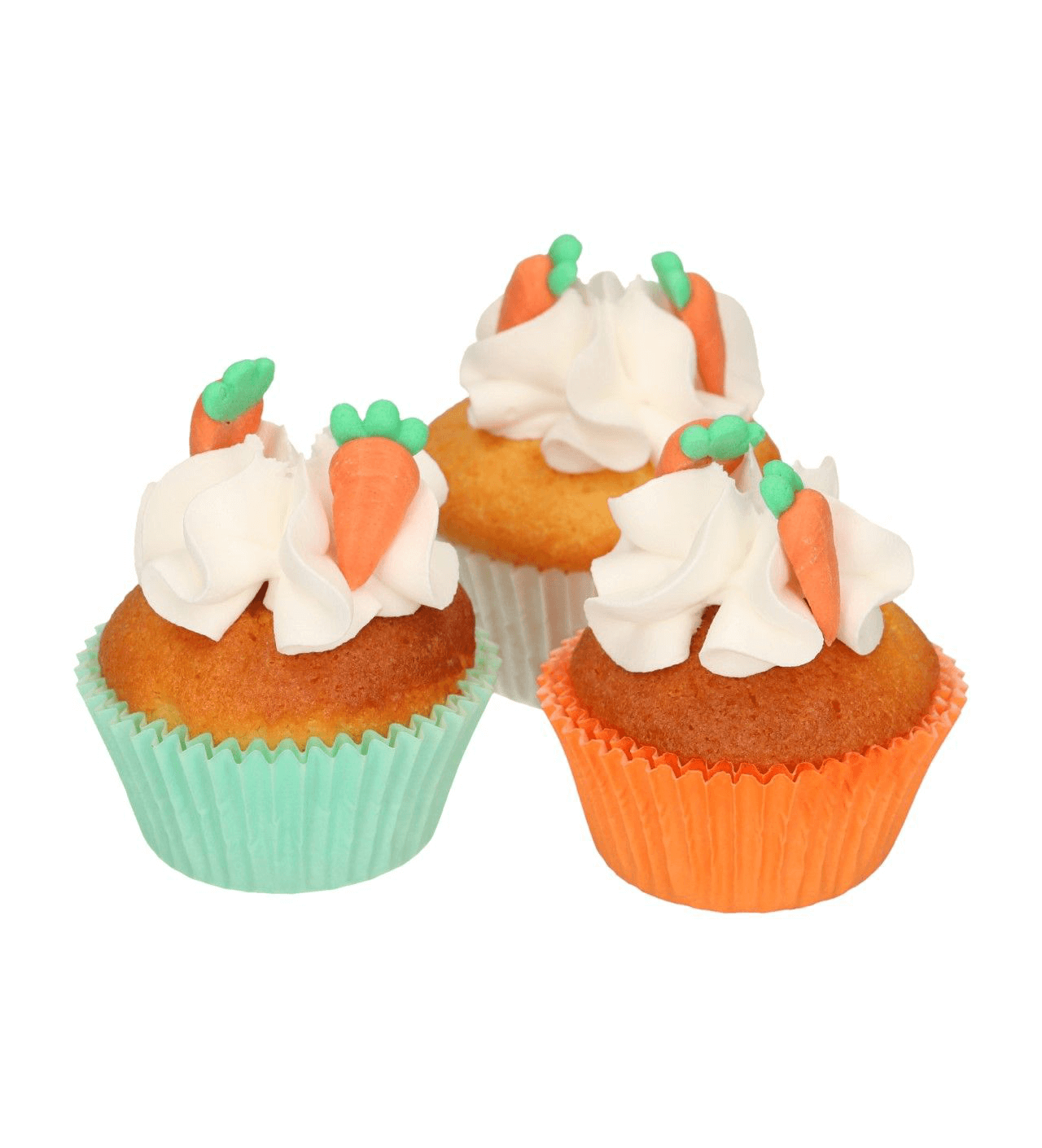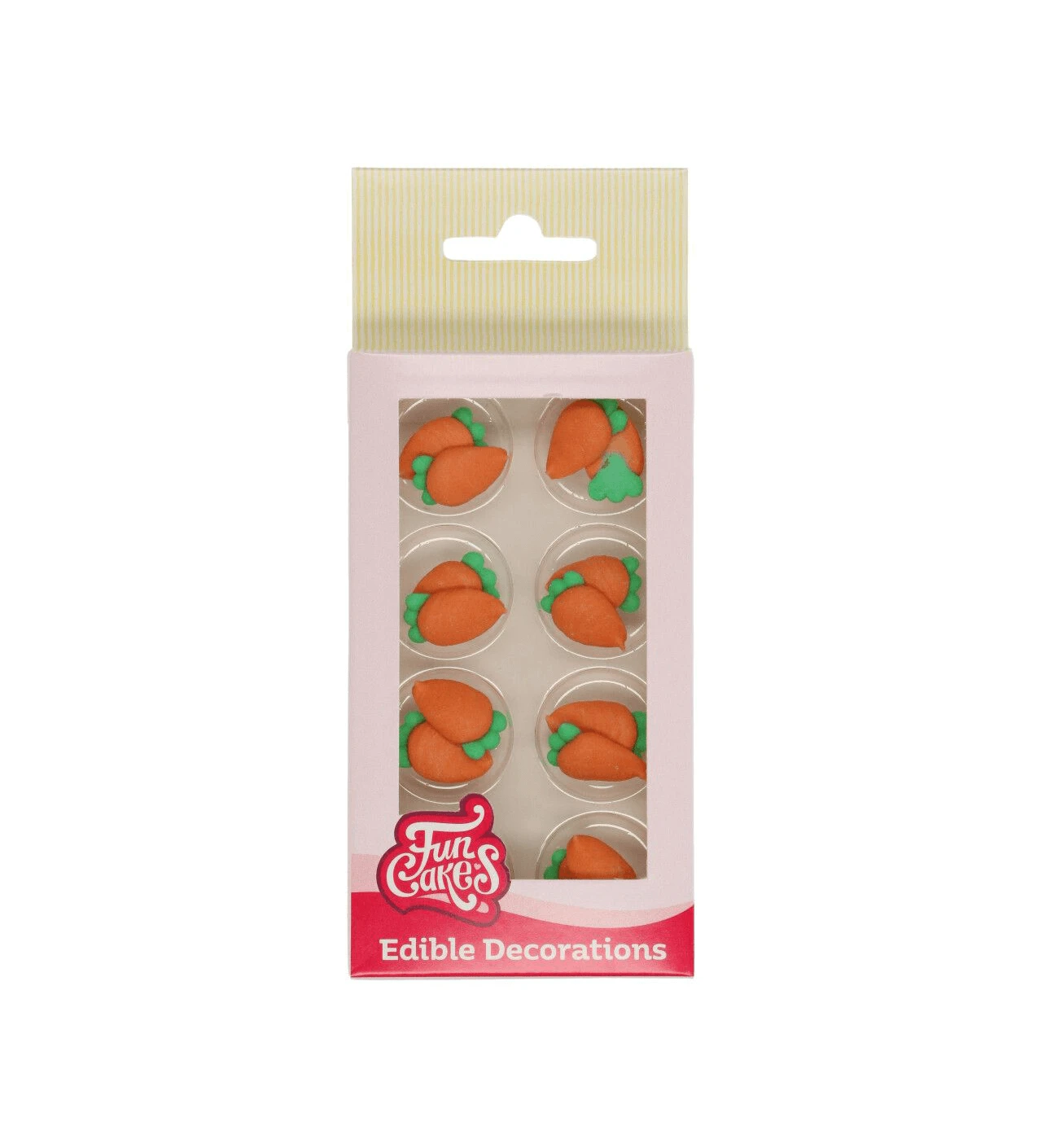 Decora tus tartas, cupcakes y otras delicias con estas bonitas figuras de azúcar FunCakes. El set incluye 16 zanahorias de aproximadamente 2 cm de largo y 1 cm de ancho. Los adornos para tartas en forma de zanahoria aportarán un toque de color y dulzura a tus preparaciones.