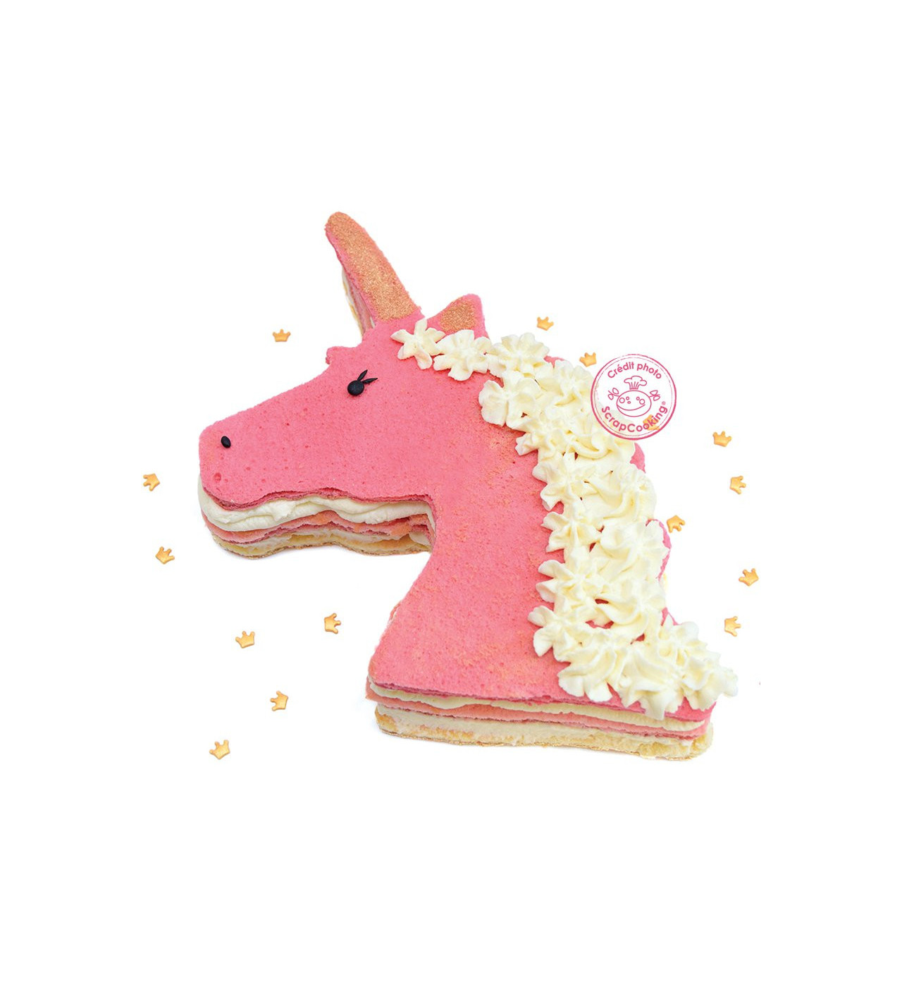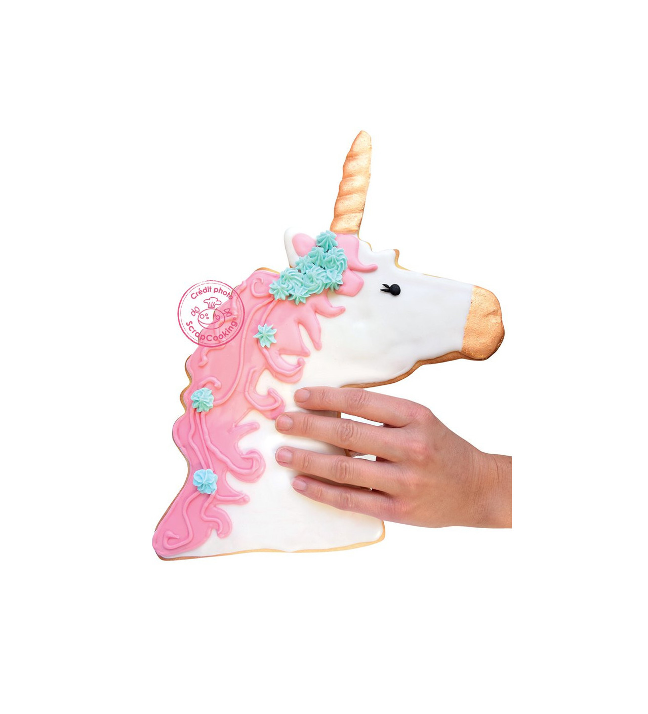 Utilizado como molde para bizcocho, este aro te permitirá hornear pasteles de unicornio de unos 36 cm de diagonal. También puedes usarlo como cortador de galletas de unicornio o cookies gigantes. Una vez cortadas, solo tendrás que decorarlas con glasa real o fondant para dar vida a tus galletas de unicornio.