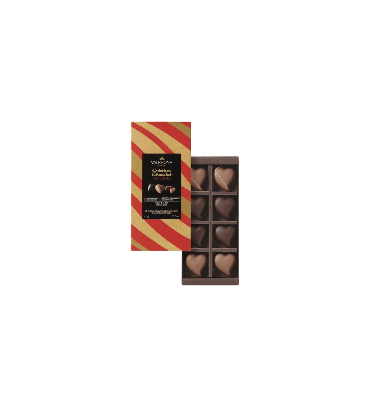 Bombones Corazones Rellenos de Chocolate con Leche y Negro (x8) 75 g Valrhona