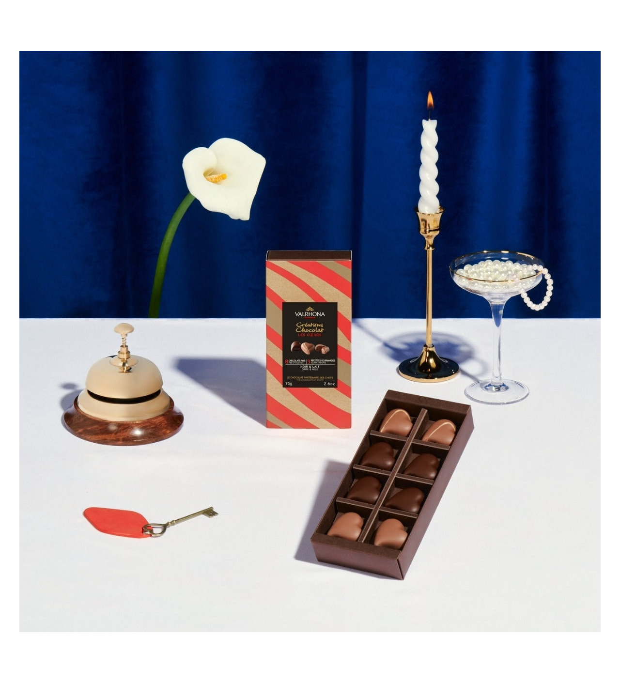 Un regalo ideal para tu pareja, tus seres queridos, o simplemente para ti, esta caja de 8 corazones rellenos de chocolate con leche y negro de 75 g Valrhona es un detalle muy especial.