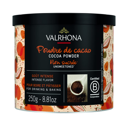 De color rojo intenso y brillante, este cacao puro en polvo es ideal para cubrir trufas o hacer decoraciones de tono ámbar.