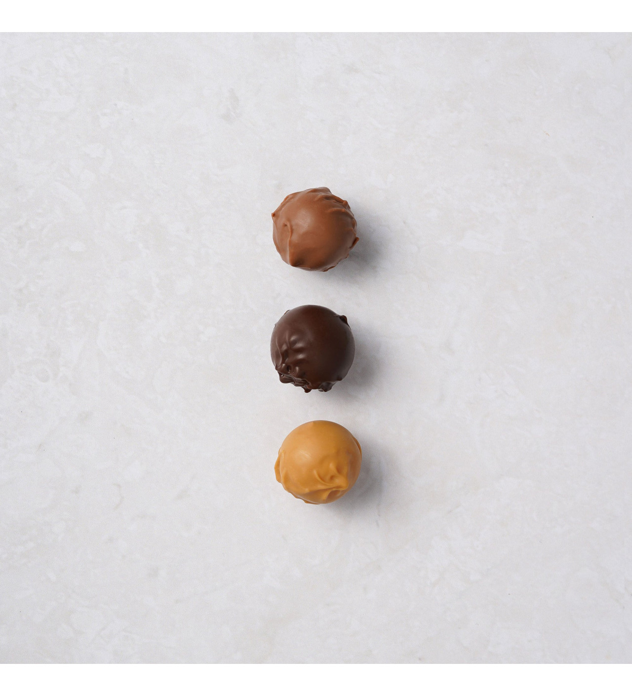 Esta caja de 12 trufas de chocolate será un regalo perfecto para tus seres queridos. La deliciosa cobertura de chocolate viene en 3 tipos distintos, ideal para que la disfrutes al máximo. Las trufas están recubiertas de chocolate Dulcey, caramelo de Tanariva y ganache de Guanaja Valrhona.