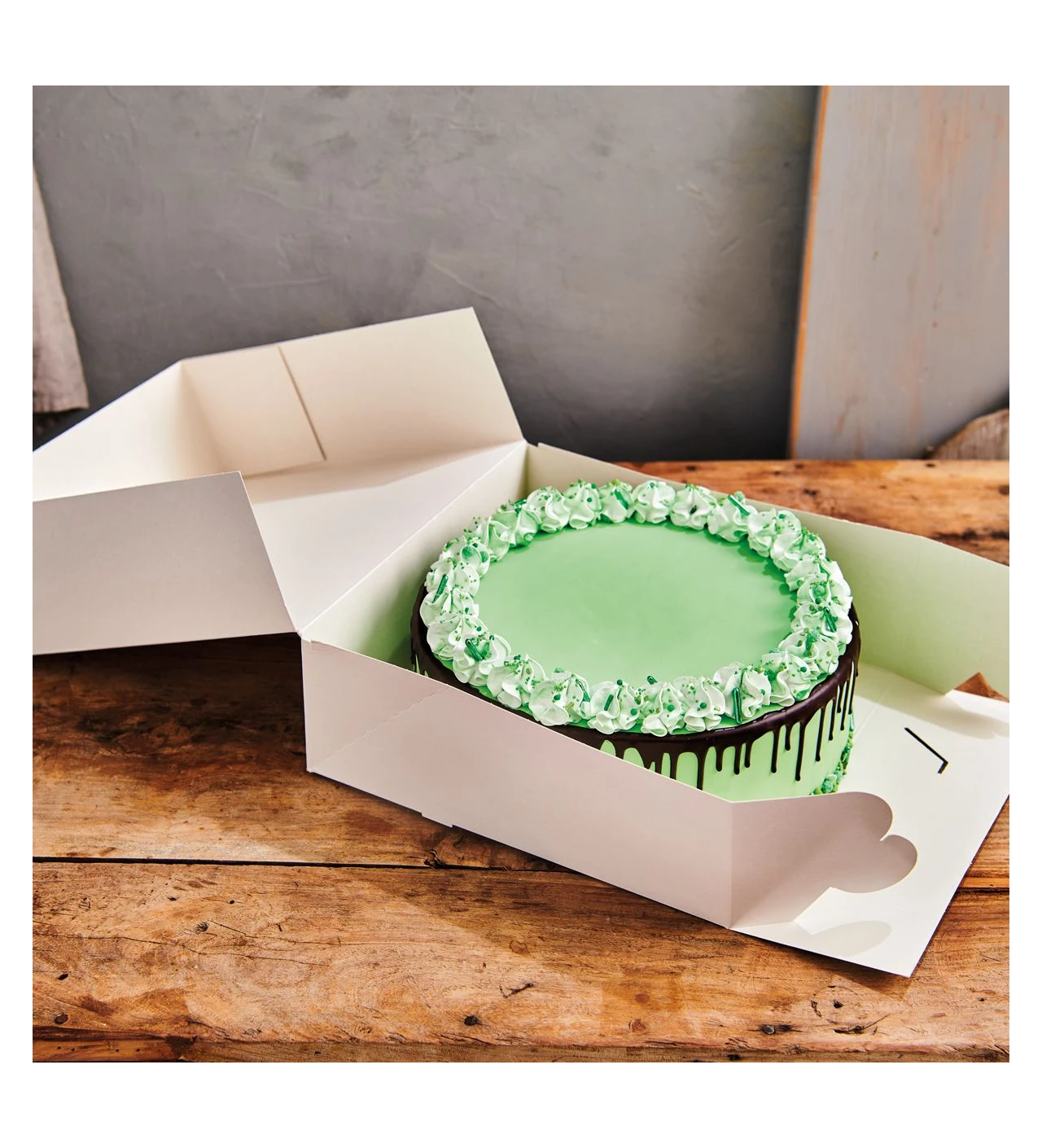 Para conservar tu pastel y transportarlo sin problema, la mejor solución es una caja para tartas. ¡De color blanco liso y sin ventana, esta caja pastelería guardará la sorpresa intacta!