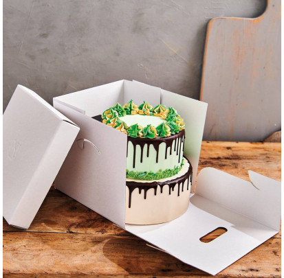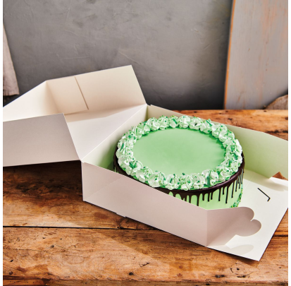Descubre las cajas para tartas cuadradas blancas. Estas cajas para pasteles de cartón glaseado vienen con cierre para facilitar el transporte y la conservación de tus postres y pasteles.
