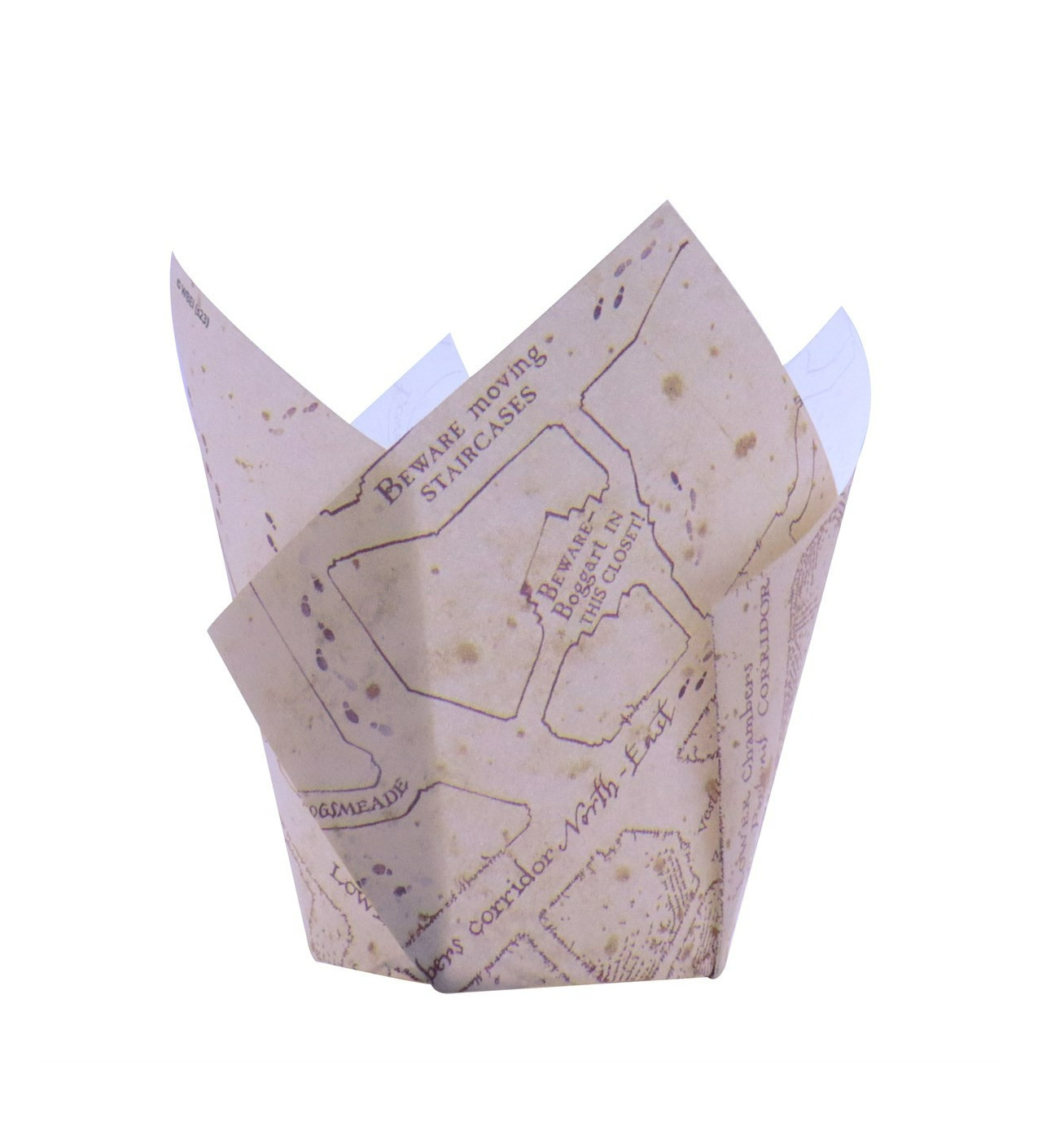 Añade un toque de misterio y magia a tus creaciones con un papel para muffins, inspirado en el famoso mapa encantado que Harry Potter utiliza para explorar todos los rincones de Hogwarts.