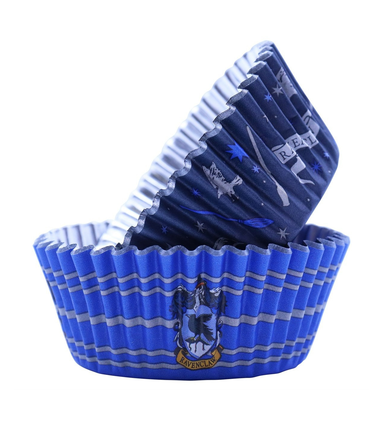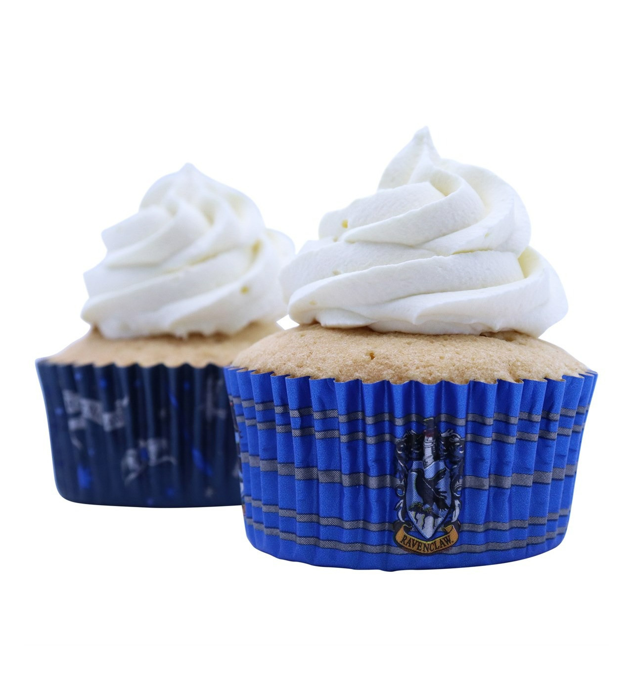 Este set de papel cupcakes contiene 30 cápsulas para muffins distribuidas en 2 diseños diferentes, decoradas en el característico azul intenso de la casa y con motivos inspirados en Ravenclaw. Además, estos moldes de papel para magdalenas están fabricados en papel con recubrimiento de aluminio, lo que les aporta impermeabilidad y resistencia al calor, garantizando que se mantengan la forma y el color de tus creaciones tras el horneado.