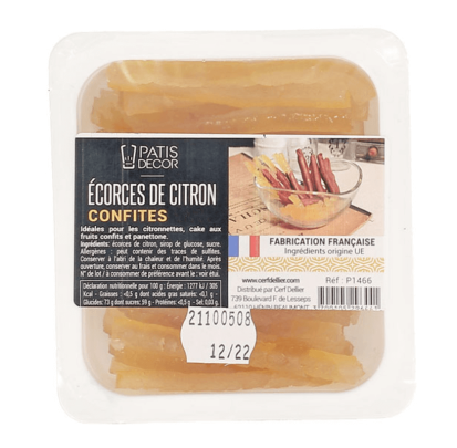 Cortada en tiras, la cáscara de limón confitada de Sabaton sirve para muchas recetas de repostería y chocolatería. ¿Qué esperas para bañar en chocolate unas deliciosas cáscaras de limón confitadas? Para que queden irresistibles, córtalas en cubitos y prepara muffins con estas delicias.