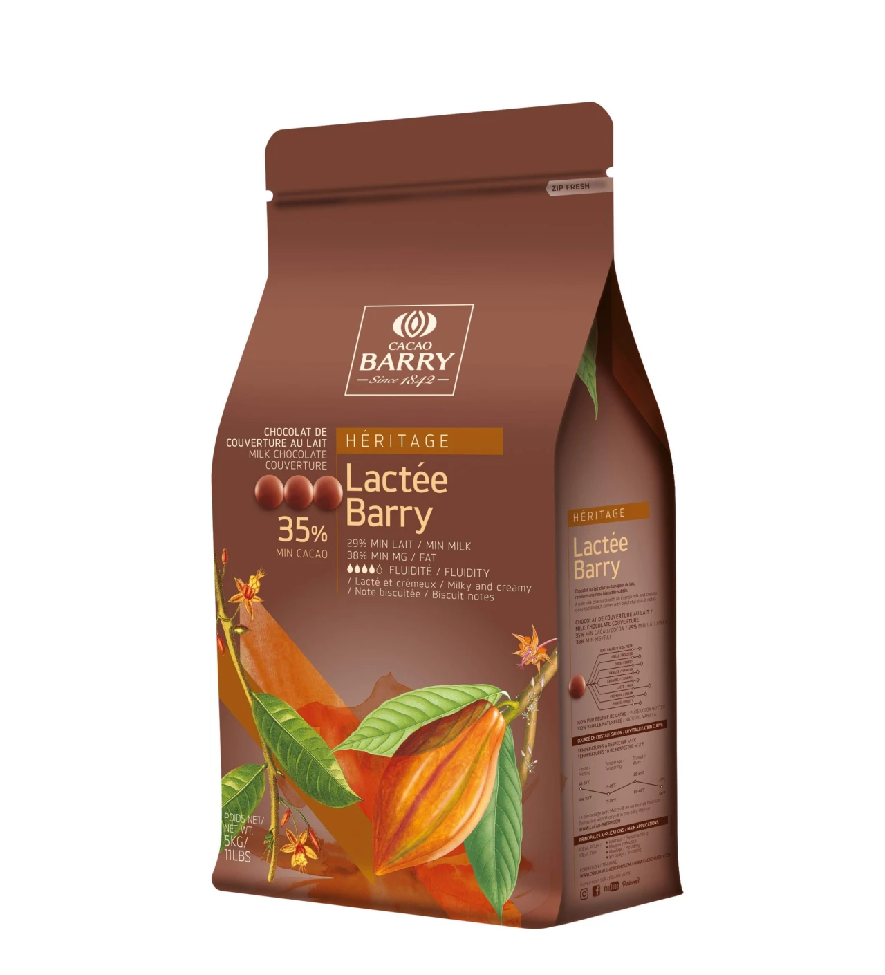 Características de la Cobertura de Chocolate con Leche 35,3 % 5 kg Cacao Barry: