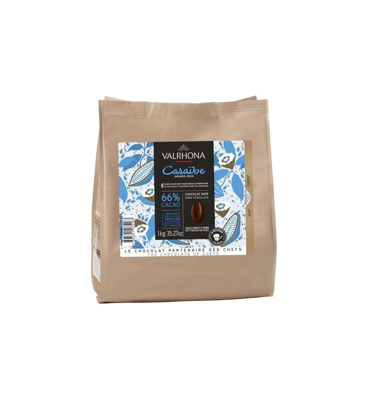 Características de la Cobertura de Chocolate Negro Caraïbe 66 % 1 kg Valrhona: