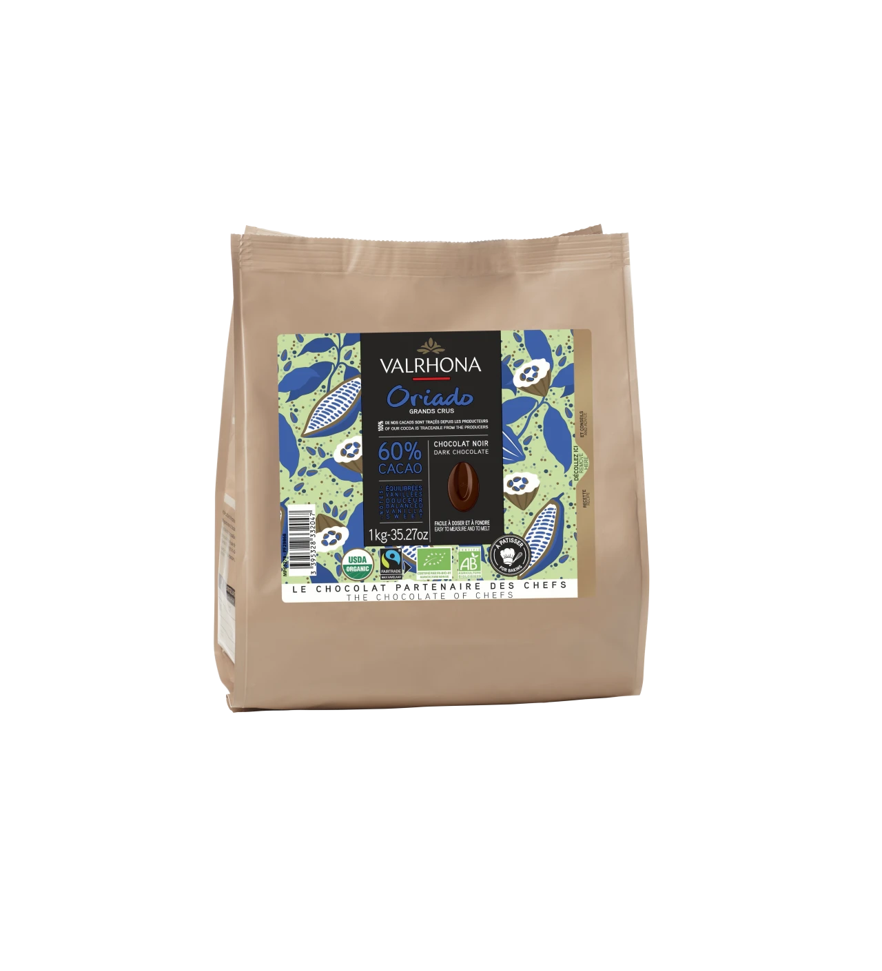 Características de la Cobertura de Chocolate Negro Oriado 60 % 1 kg Bio Valrhona: