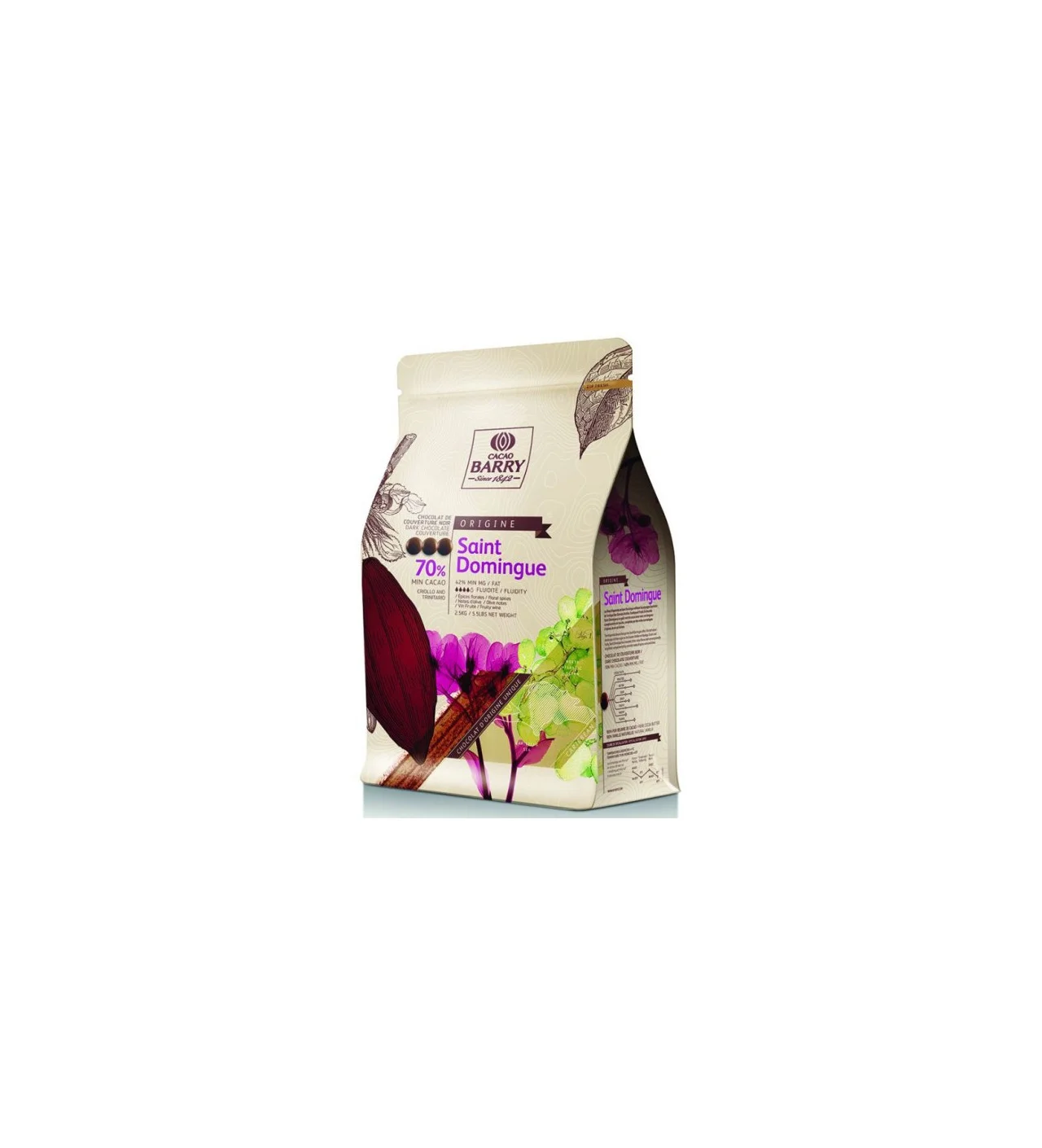 Características de la Cobertura de Chocolate Negro Origine Santo Domingo 70% 2,5 kg Cacao Barry: