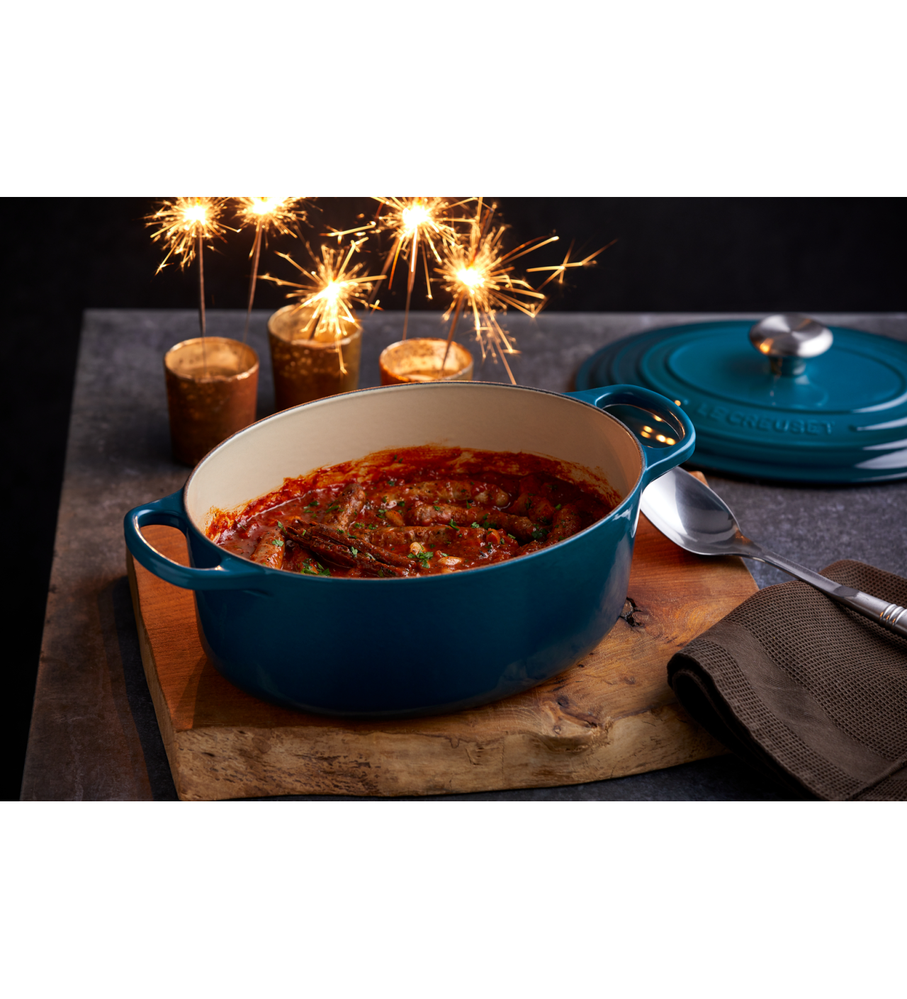 Características de la Cocotte de Hierro Fundido Ovalada 31 cm Azul Deep Teal Signature Le Creuset: