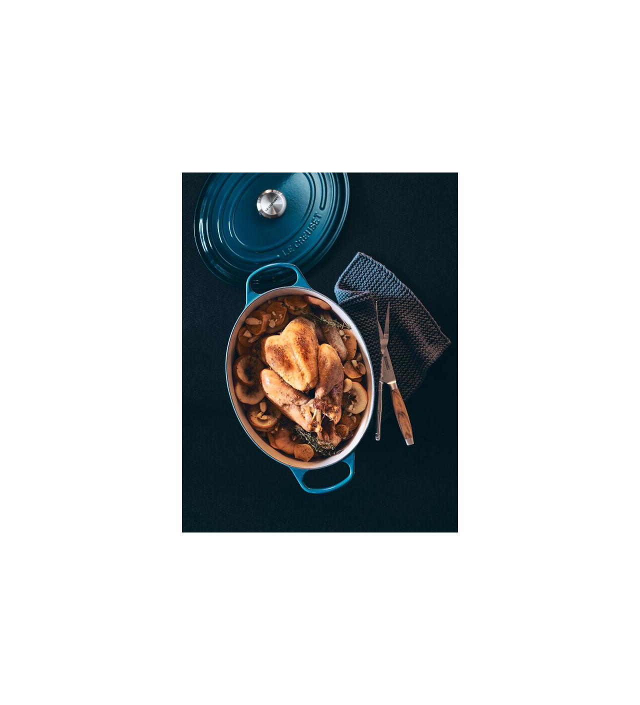 La cocotte hierro fundido es compatible con todas las fuentes de calor: gas, inducción, vitrocerámica, eléctrica, horno de gas, de petróleo, de carbón o de madera. Gracias a todas estas ventajas, la cocotte es perfecta para preparar platos tiernos y sabrosos que se deshacen. Los jugos de los ingredientes se concentran dentro de la cocotte e intensifican el sabor del plato. El tono Deep Teal de la olla de hierro fundido esmaltado aporta un toque sofisticado a tu cocina. Para servir tus platos, te recomendamos agarrar firmemente esta cocotte 31 cm y levantarla. De lo contrario, podrías deteriorar tu placa de cocina o cocotte. Gracias a su nuevo diseño el transporte de la cocina al comedor es muy cómodo. La Cocotte Le Creuset tiene dos anchas asas que han sido diseñadas para un agarre más ergonómico y firme.