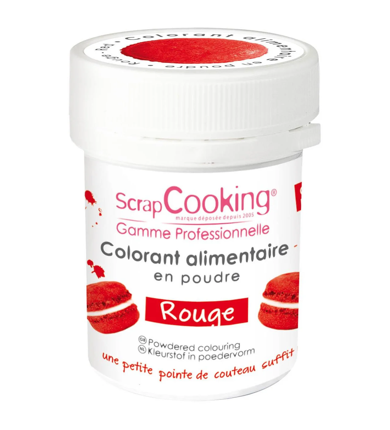 ¡Aporta un bonito toque de rojo a tus postres gracias al colorante alimentario en polvo rojo de Scrapcooking! ¡Este rojo intenso será un verdadero deleite para tus ojos!