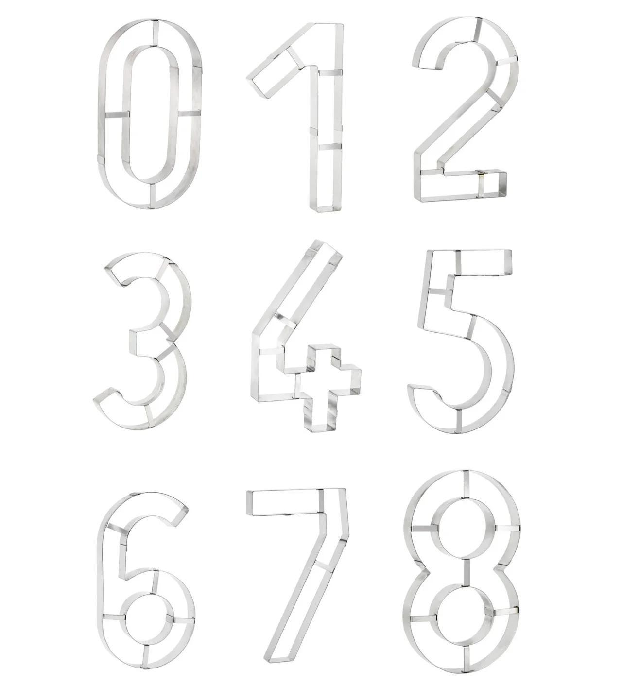 Cortador de galletas números grandes acero inoxidable 32 cm de altura (x9)