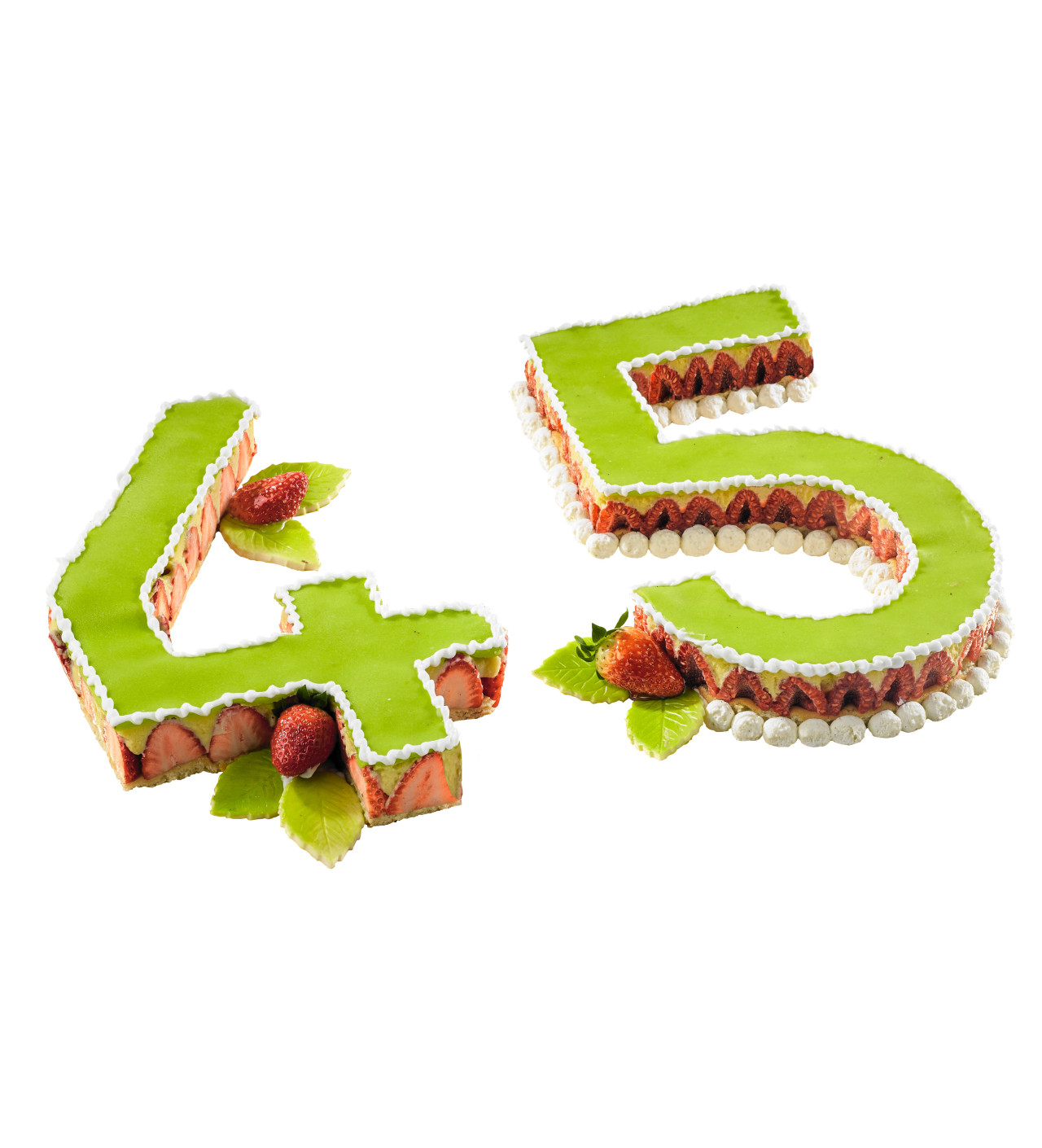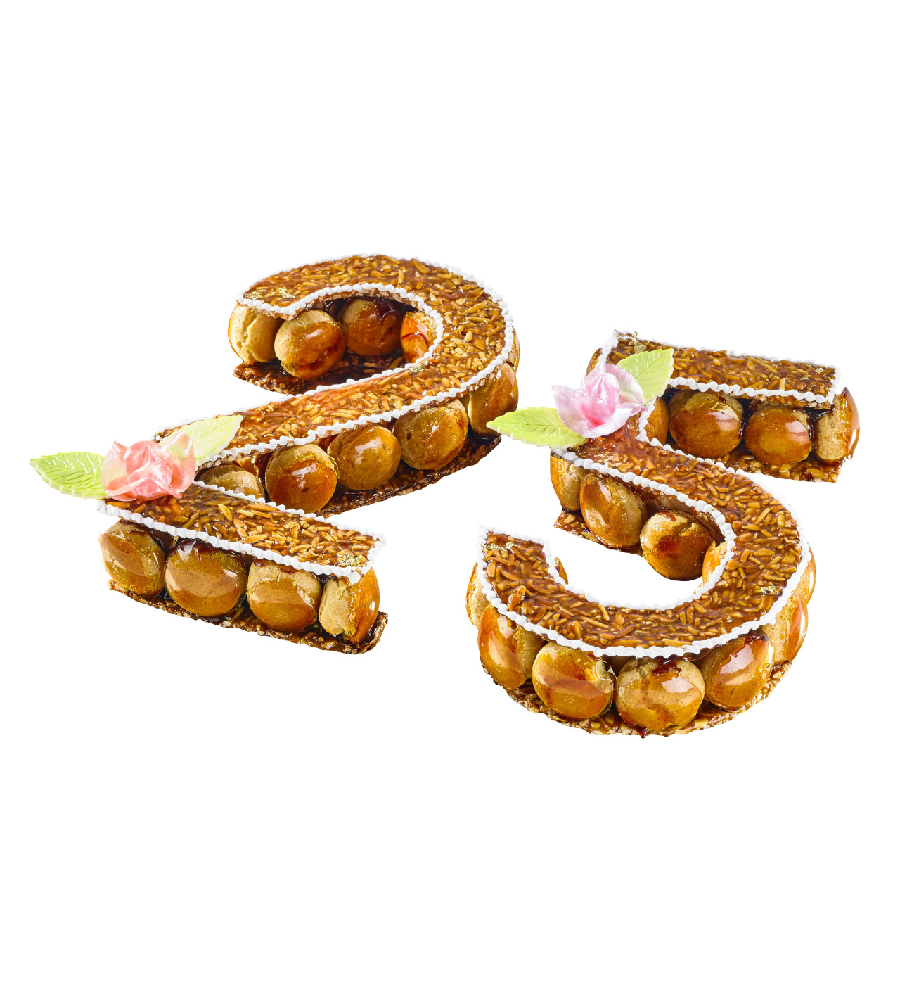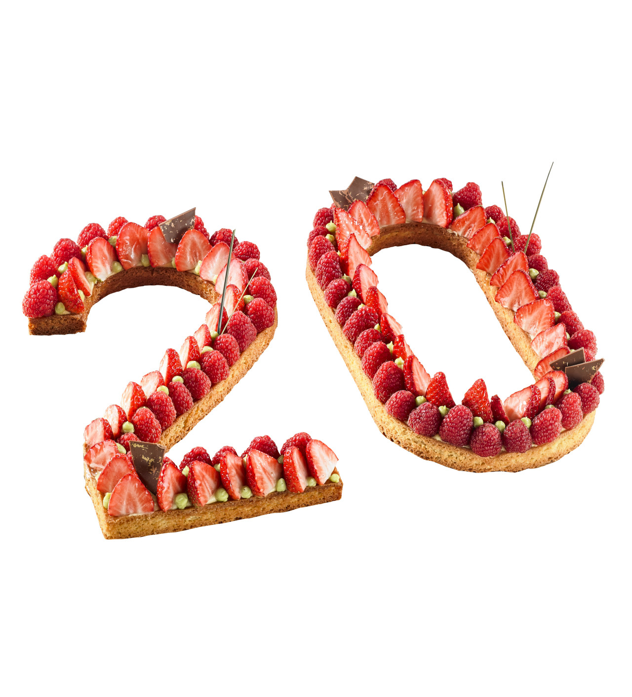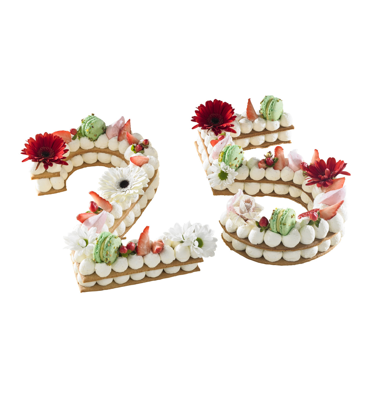 Todos los pasteles son ideales para hacer un pastel número: tarta fraisier, pastel de chocolate o incluso un croquembouche, ya que el cortador de galletas puede cortar el crocante.