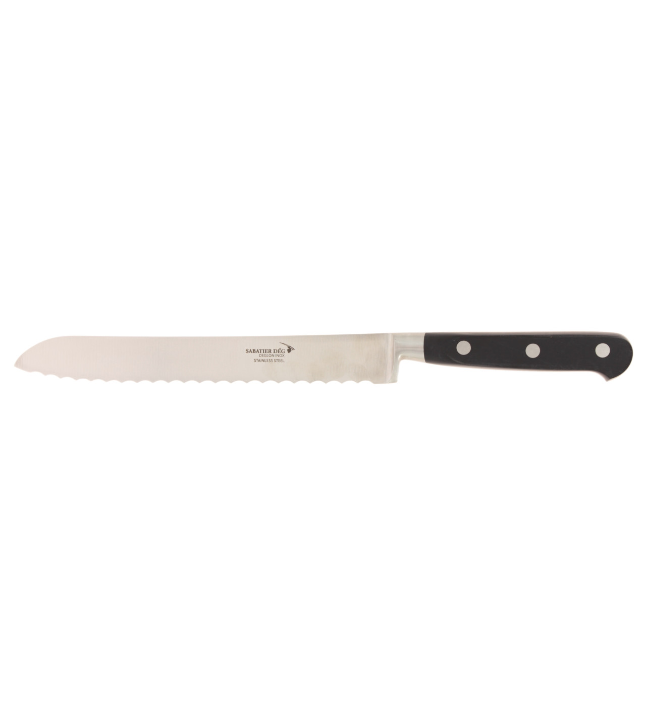Un verdadero cuchillo de sierra con dientes muy afilados, este cuchillo panero corta fácilmente y con precisión tanto los panes más duros como los más delicados. Este cuchillo francés también es perfecto para brioches, masas hojaldradas y quebradas. La hoja del cuchillo de pan de la marca Déglon está fabricada en acero inoxidable.