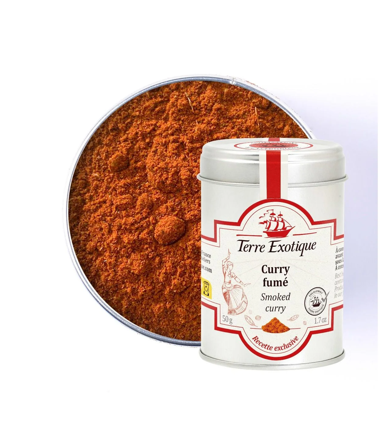Sazona tus recetas favoritas con el curry ahumado de Terre Exotique, así tendrán un sabor ahumado y tostado. Este curry en polvo se elabora con mucho cuidado para obtener una combinación de deliciosos aromas que se complementan entre sí. Está hecho con pimentón, cilantro, cúrcuma, pimienta negra, entre otros.