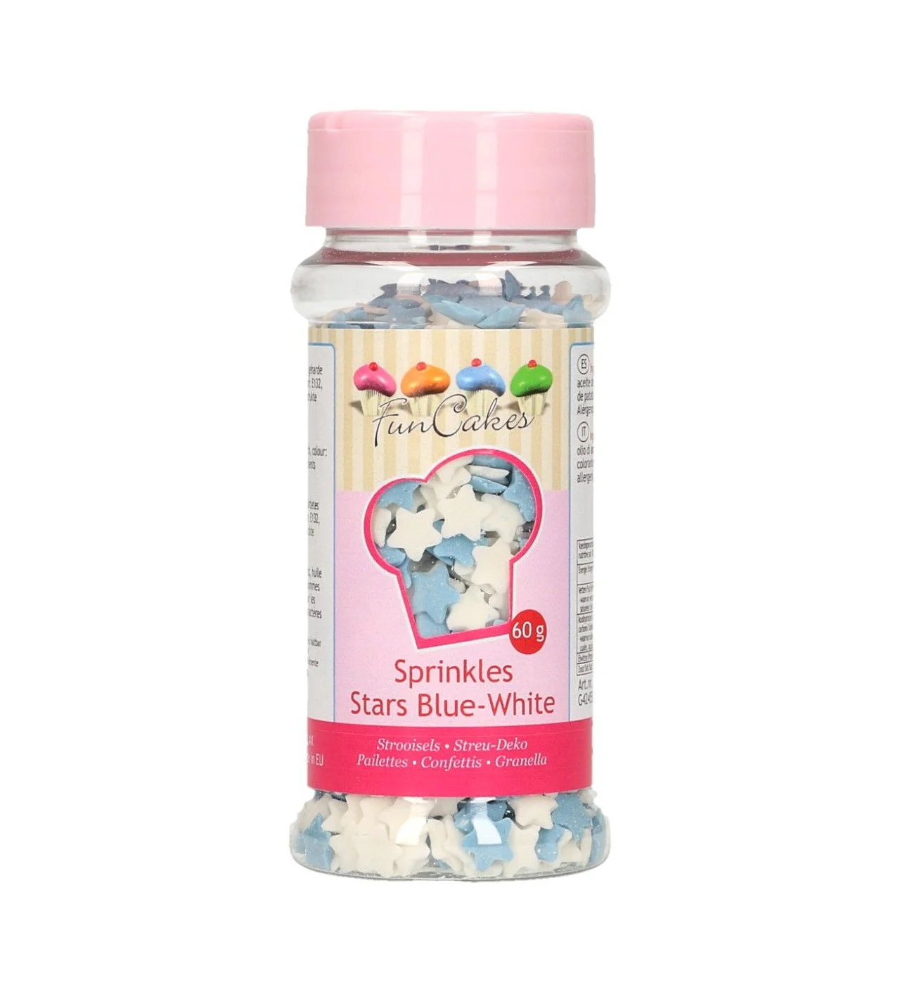 ¡Conviértete en la estrella de los postres al espolvorearlos con las mini estrellas de azúcar azules y blancas de la marca Funcakes!