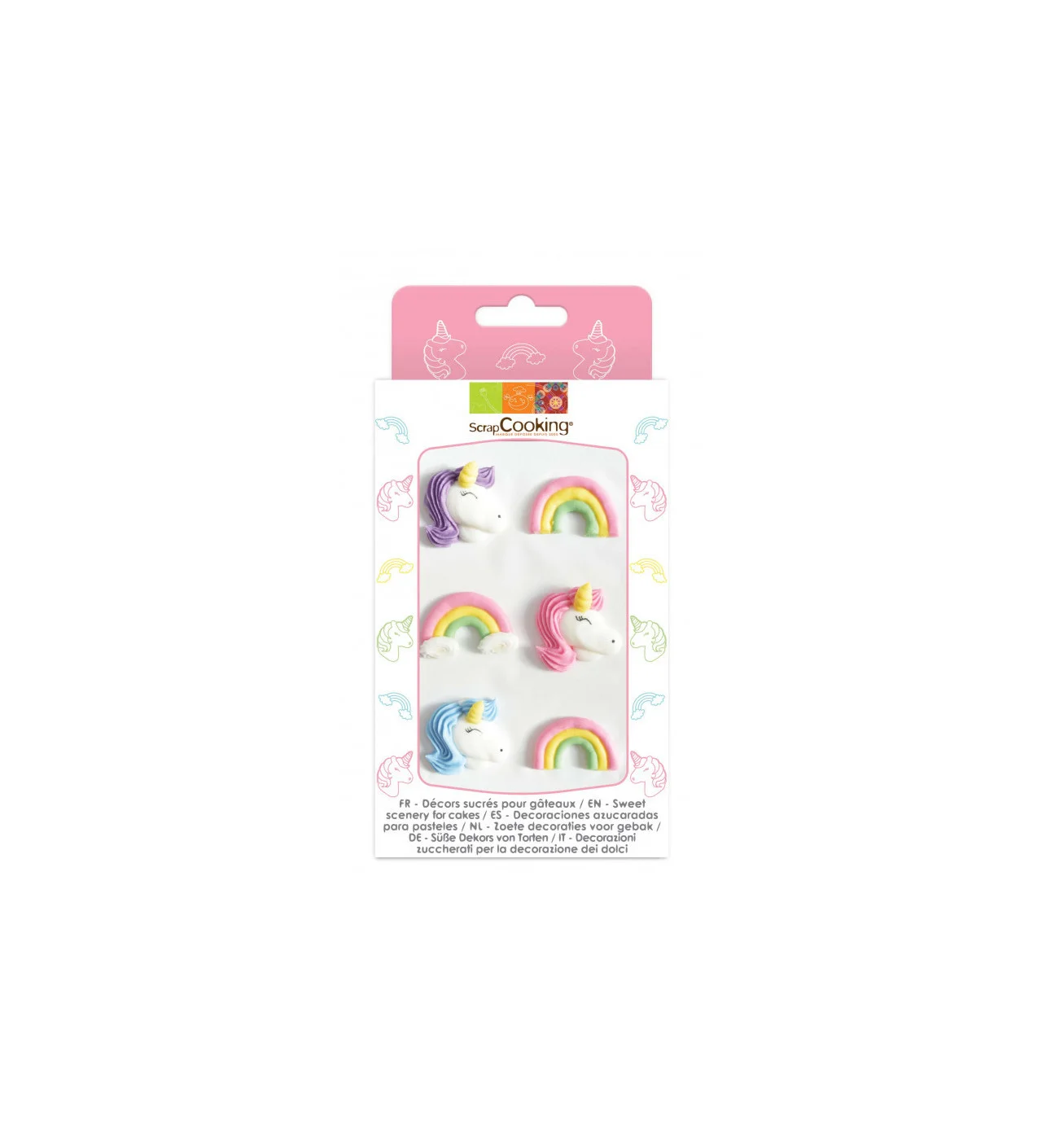 Figuras de Azúcar Unicornio y Arcoíris x6 ScrapCooking