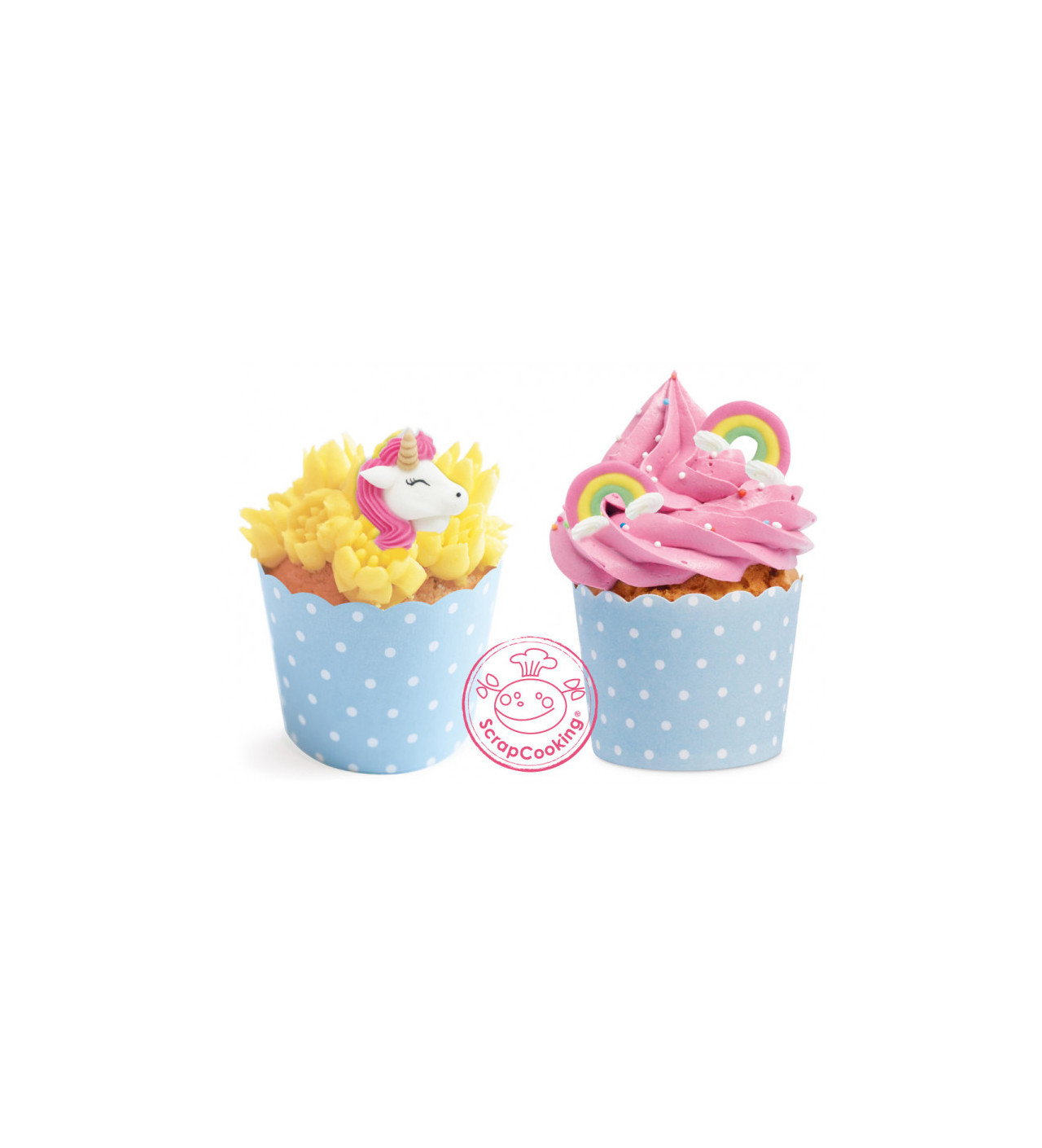 Aporta un toque de fantasía con las 6 figuras de azúcar unicornio y arcoíris de ScrapCooking. Estas decoraciones comestibles, perfectas para colocar sobre tartas de unicornio o rainbow cakes, añadirán color y originalidad a tus postres. Puedes elegir entre una cabeza de unicornio o diferentes modelos de arcoíris, con o sin nube. Una vez colocadas sobre la crema o glasa, se mantendrán en su sitio hasta que un pequeño goloso (¡o no tan pequeño!) se las coma.