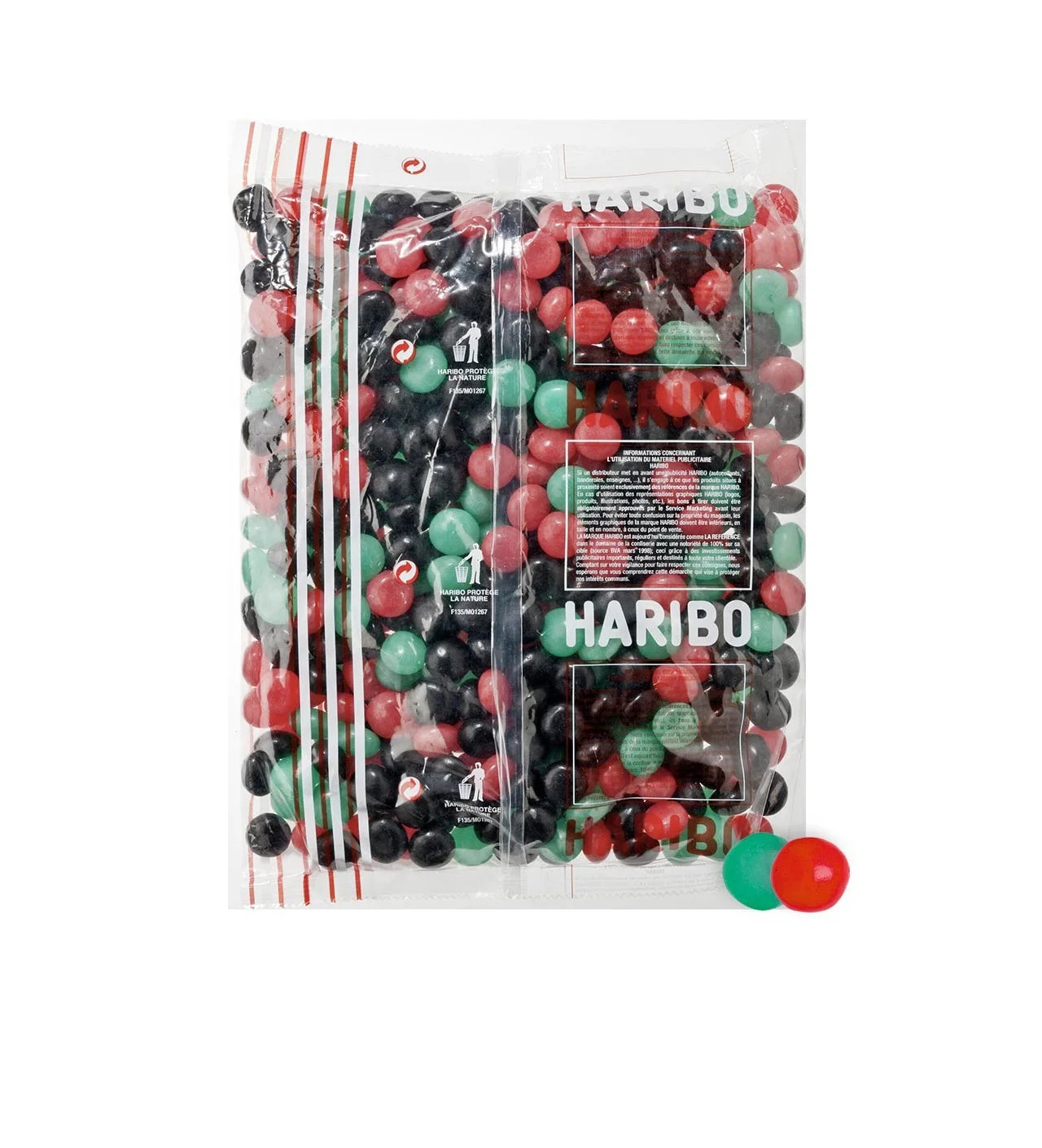 Llena tu caja Haribo o tus cajas de gominolas fraizibus Haribo. Estas esferitas gelificadas se deshacen en la boca y desprenden un sabroso aroma de frutos rojos. Además, estos chuches Haribo son aptos para alimentación vegetariana.