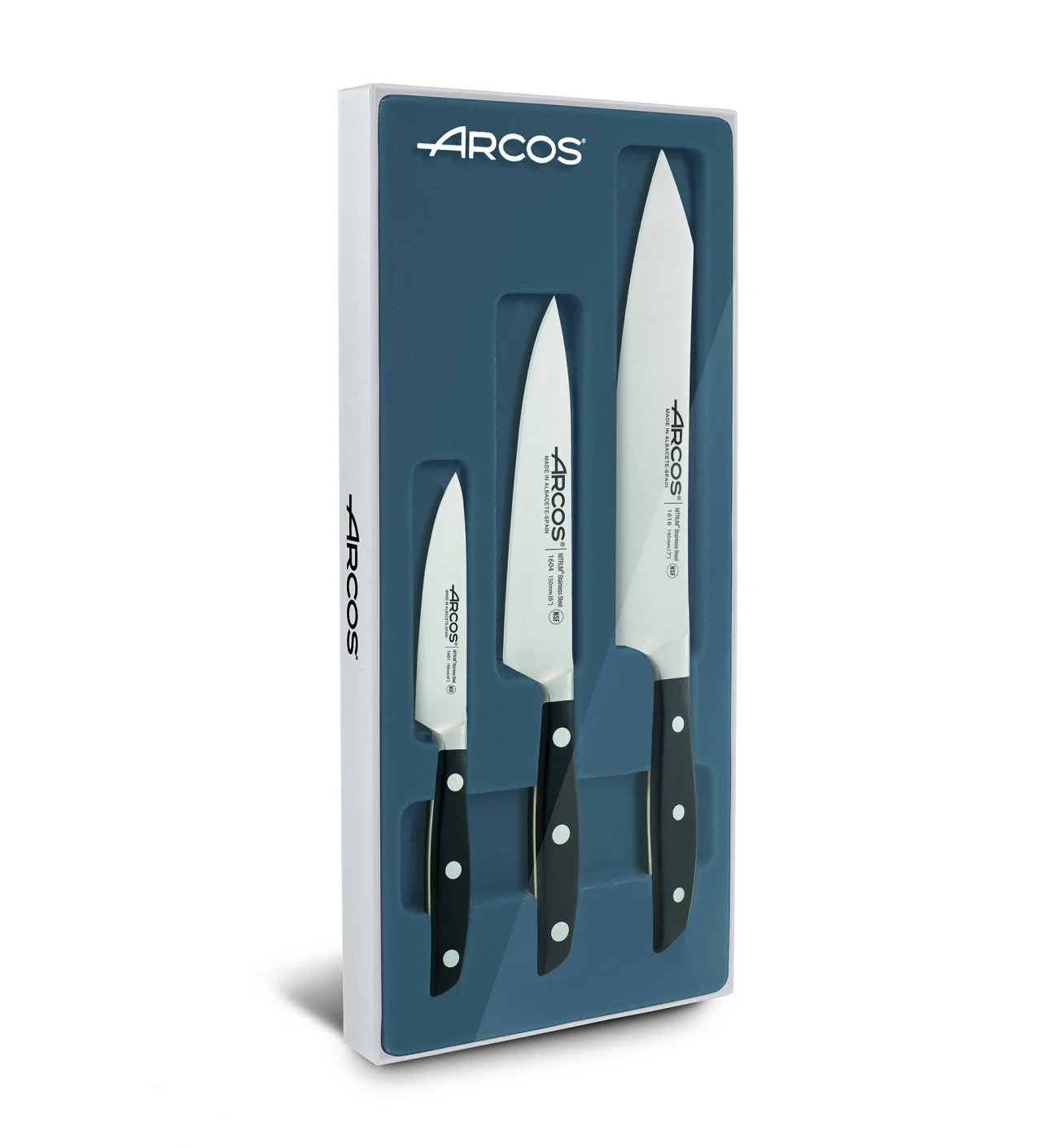 El juego de cuchillos Arcos es una excelente idea de regalo para los amantes de la cocina. Este set reúne 3 b de la serie Manhattan, una colección de cuchillos forjados de alta gama, pensada para profesionales y aficionados exigentes.