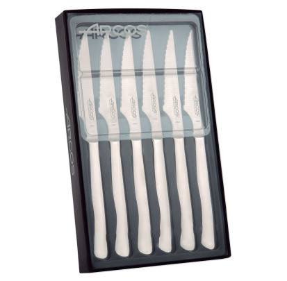El diseño de este set de cuchillos de cocina Arcos ha sido concebido para adaptarse a los movimientos de los profesionales en cocina: el lomo de la hoja es suave para mayor comodidad, y la virola cuadrada ofrece robustez y seguridad. La virola también ayuda a absorber los golpes en caso de caída y actúa como protección para los dedos.