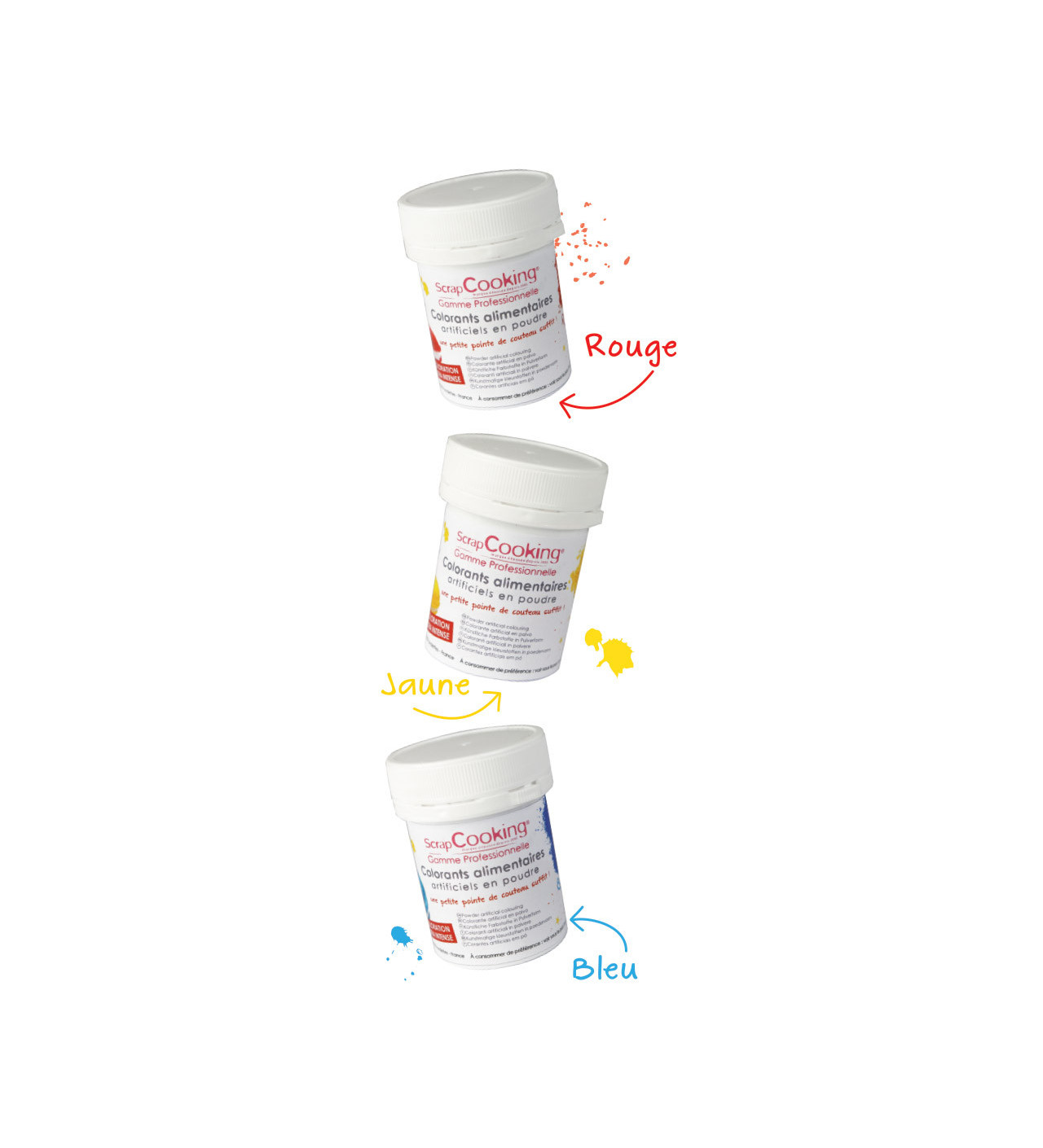 Lote de 3 Colorantes Alimentarios en Polvo Rojo / Amarillo / Azul Scrapcooking