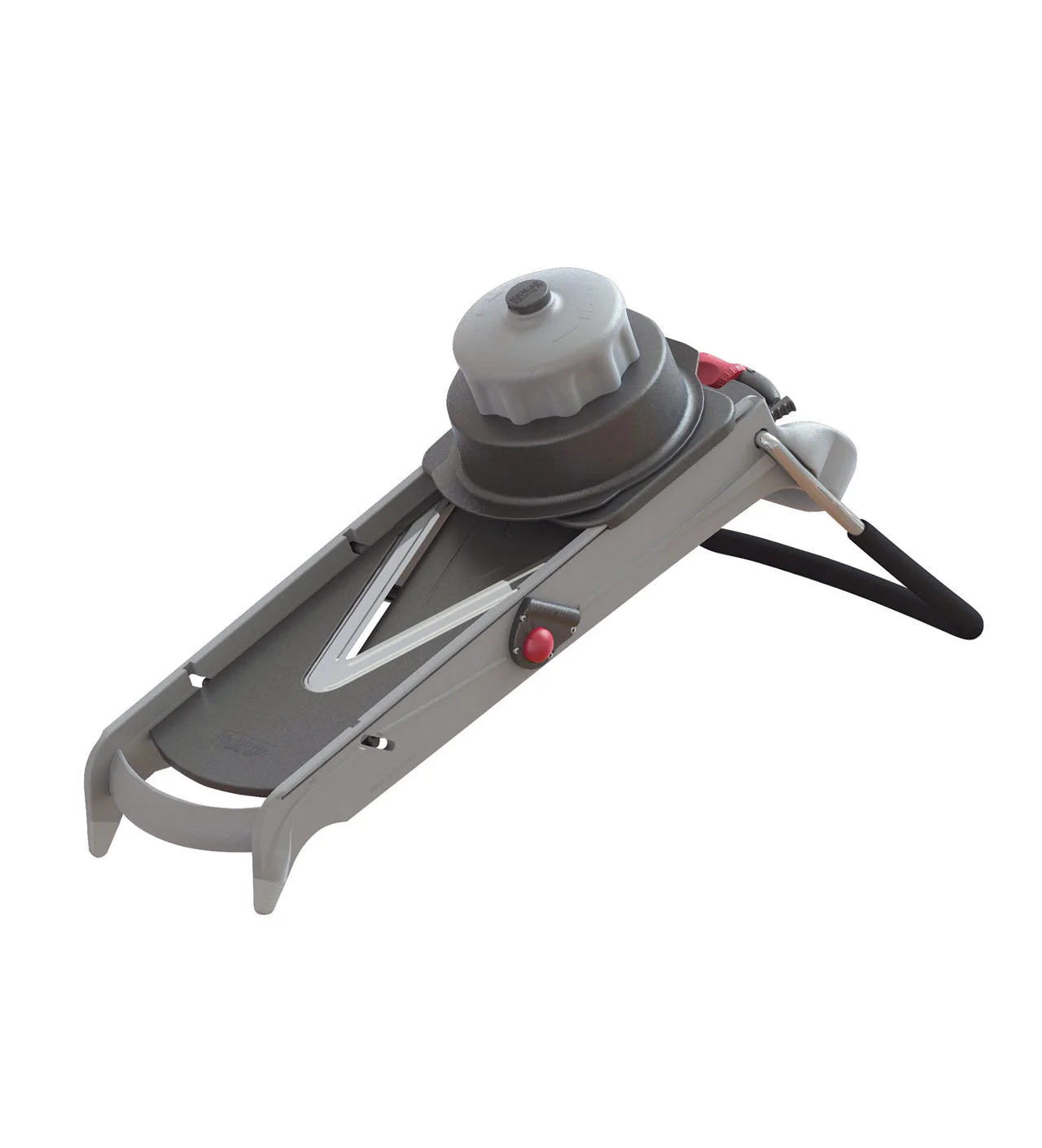 Esta mandolina de cocina de Buyer con cuchilla en V permite cortar verduras y frutas en rodajas, juliana, rombos e incluso cubos. El cambio entre los diferentes sistemas de corte es rápido y sencillo, por lo que esta mandolina profesional es ideal para ahorrar tiempo en la cocina sin renunciar a la calidad ni la precisión.