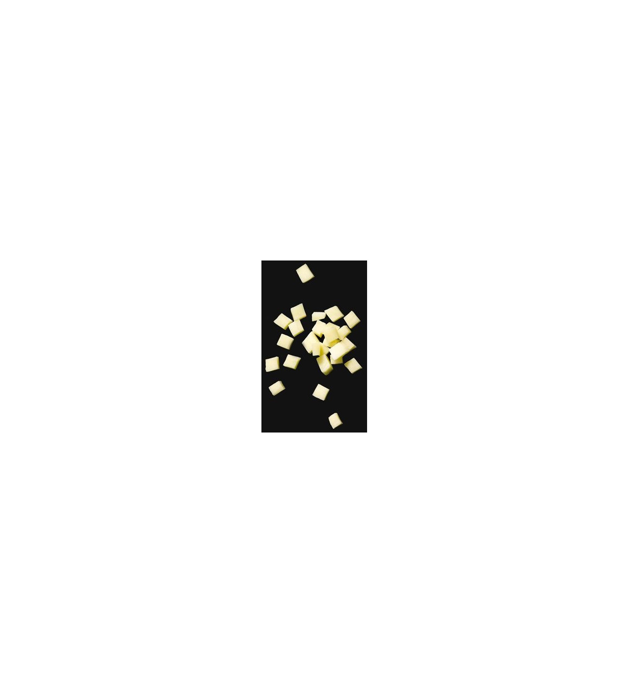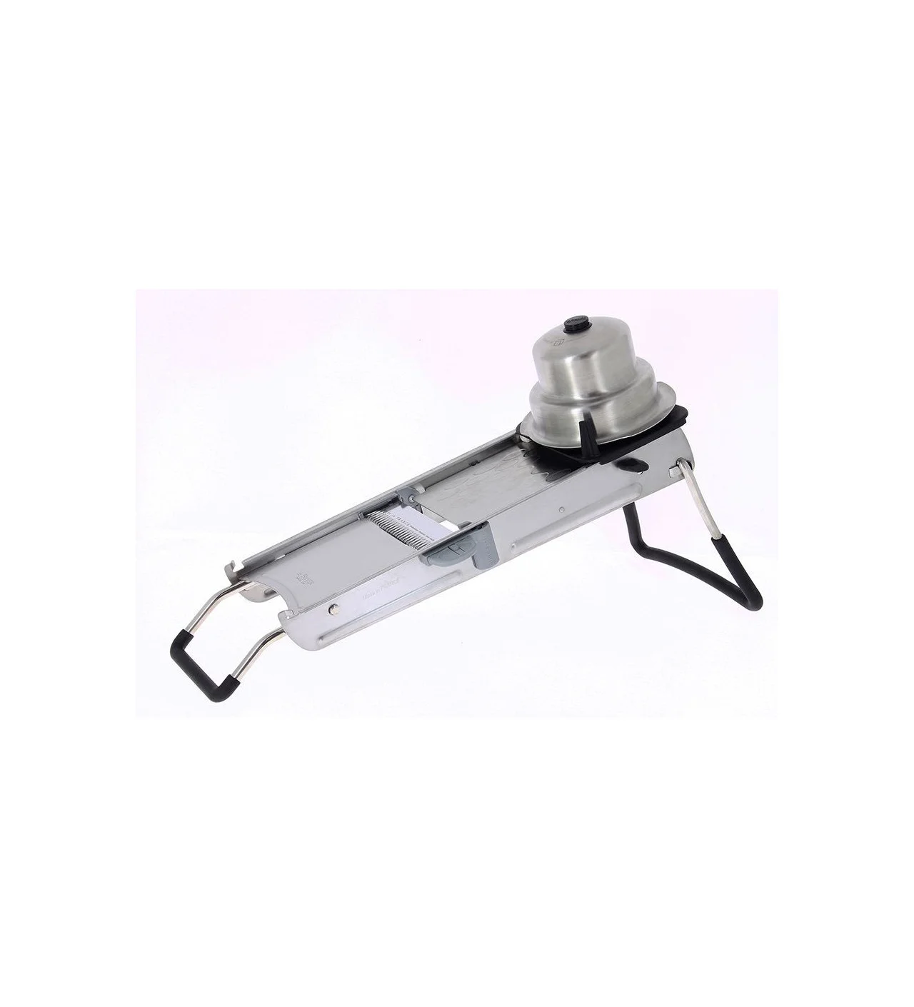 La superficie alveolada de la rampa de la mandolina de Buyer favorece el deslizamiento de los alimentos, facilitando el corte y mejorando la precisión.