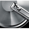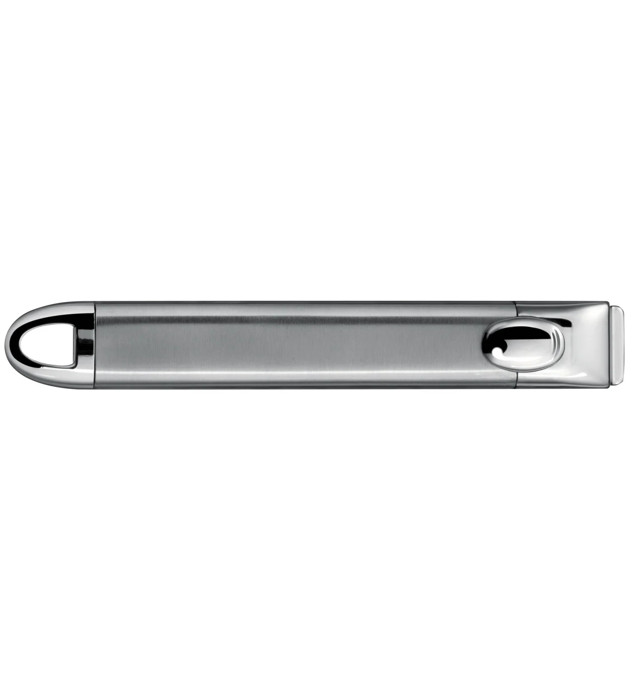 El mango de acero inoxidable cepillado se engancha y desengancha a todos los utensilios de las colecciones extraíbles de Cristel (Mutine, Casteline, Strate, entre otras).