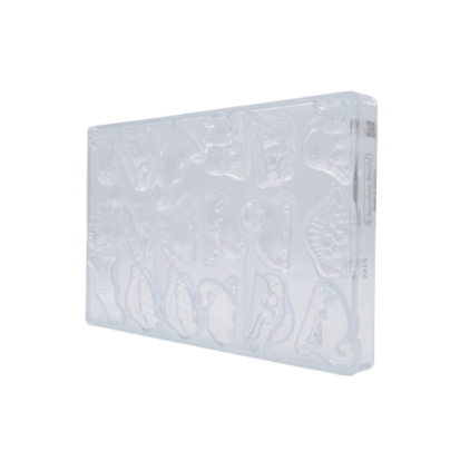 Se trata de un molde de policarbonato que garantiza un desmolde fácil y preciso, logrando figuras brillantes y con detalles muy bien definidos. Su material rígido y resistente optimiza el trabajo del chocolate, ayudando a obtener resultados uniformes y de aspecto profesional. El molde Chocolate World incluye 16 cavidades, distribuidas en 8 frontales y 8 traseras, perfectas para crear figuras completas.