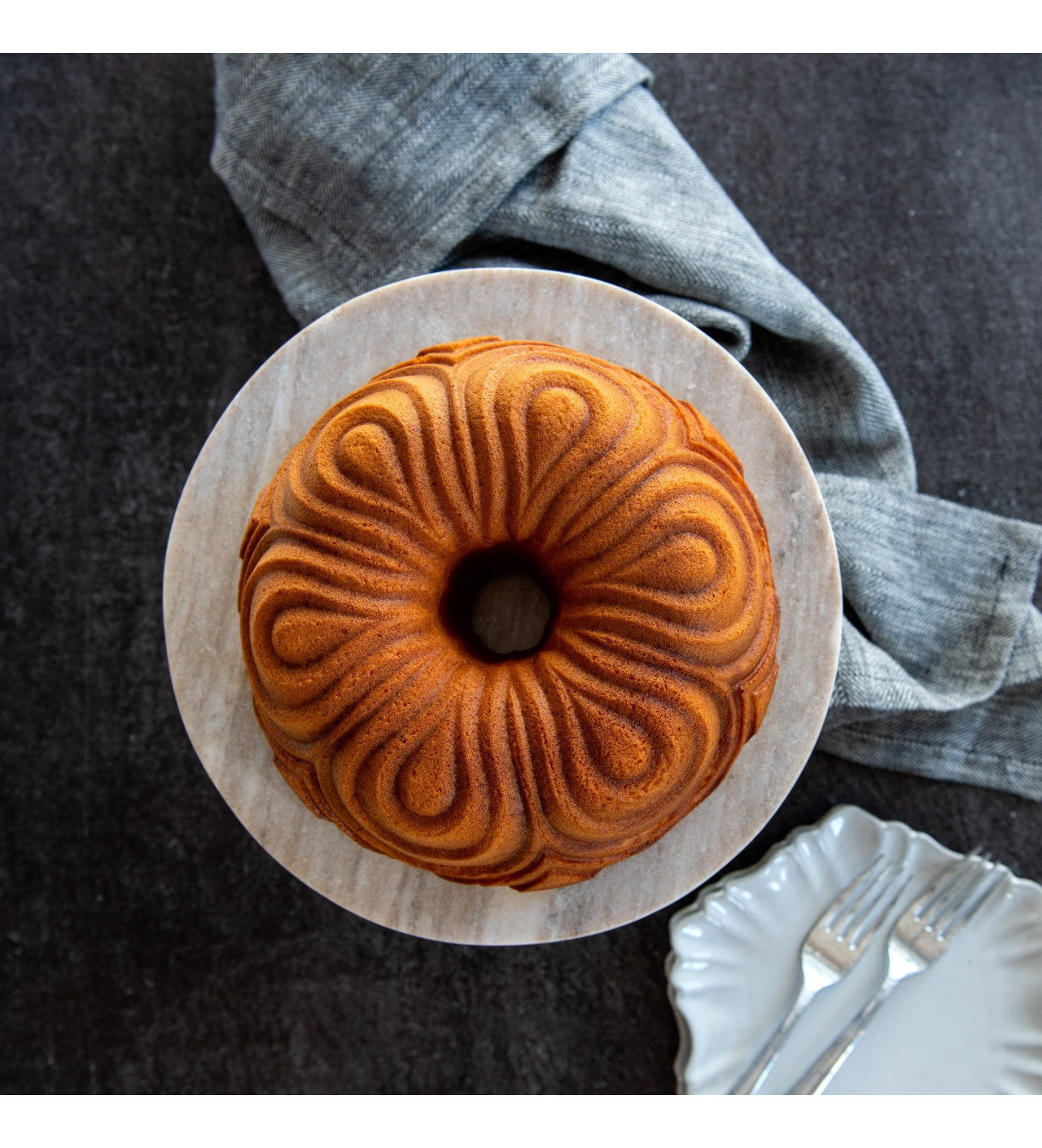 Las curvas que adornan este molde Bundt cake pronto decorarán tus recetas y crearán un efecto espectacular garantizado en el centro de tu mesa. Para hacer un bizcocho Bundt no hace falta complicarse la vida. Prepara la masa y vierte en el molde de aluminio hasta llenar 3/4 del recipiente. Luego aguarda que la masa cubra incluso las hendiduras más pequeñas, lleva al horno y deja que Nordic Ware haga lo suyo. Cuando lo saques del horno, aguarda algunos minutos para que tu postre se enfríe; luego desmóldalo sin problemas gracias a la calidad antiadherente del molde Bundt chiffon royal.