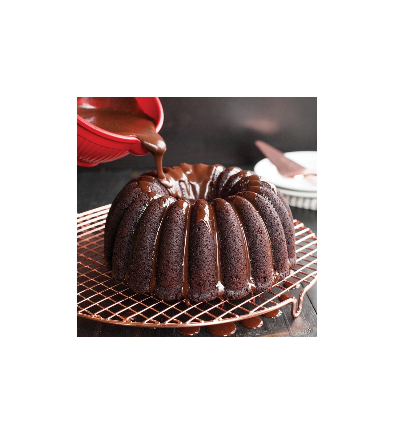 Haz que tus bizcochos queden hermosos y deliciosos con un llamativo diseño que, además, despertará el antojo y se robará la mirada de todos tus invitados. Nordic Ware trae para ti un molde Bundt cake con un estilo hipnotizante y práctico a la vez.
