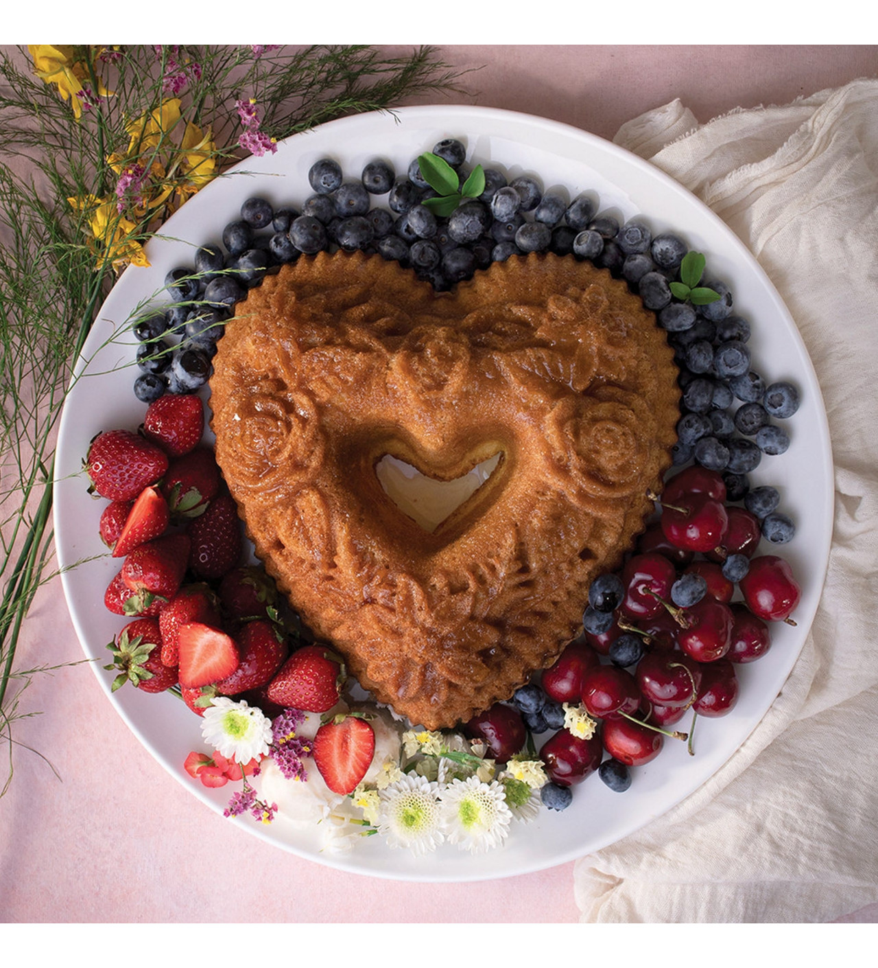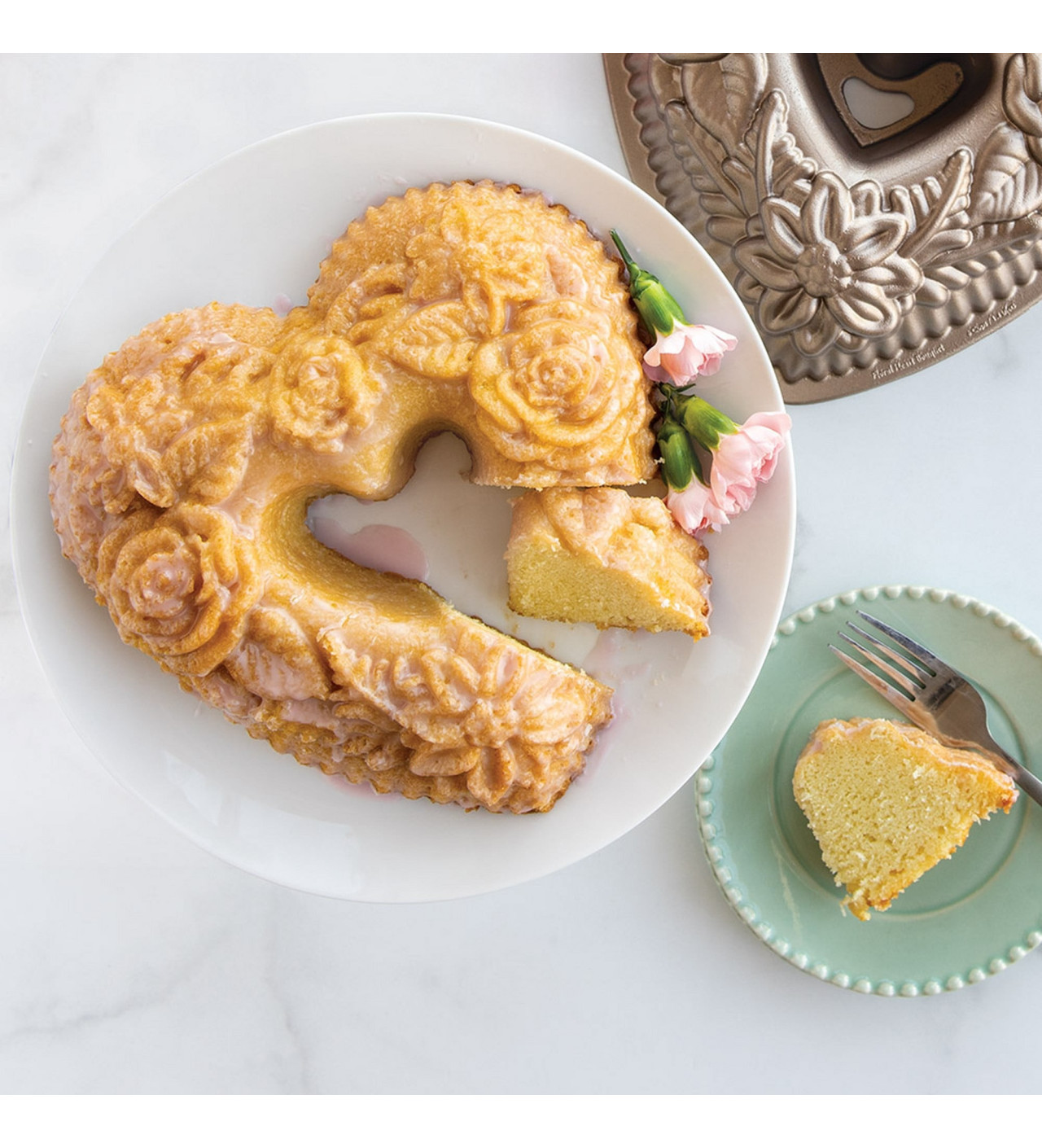 Molde Bundt Cake Floral Heart Bouquet Toffee Nordic Ware