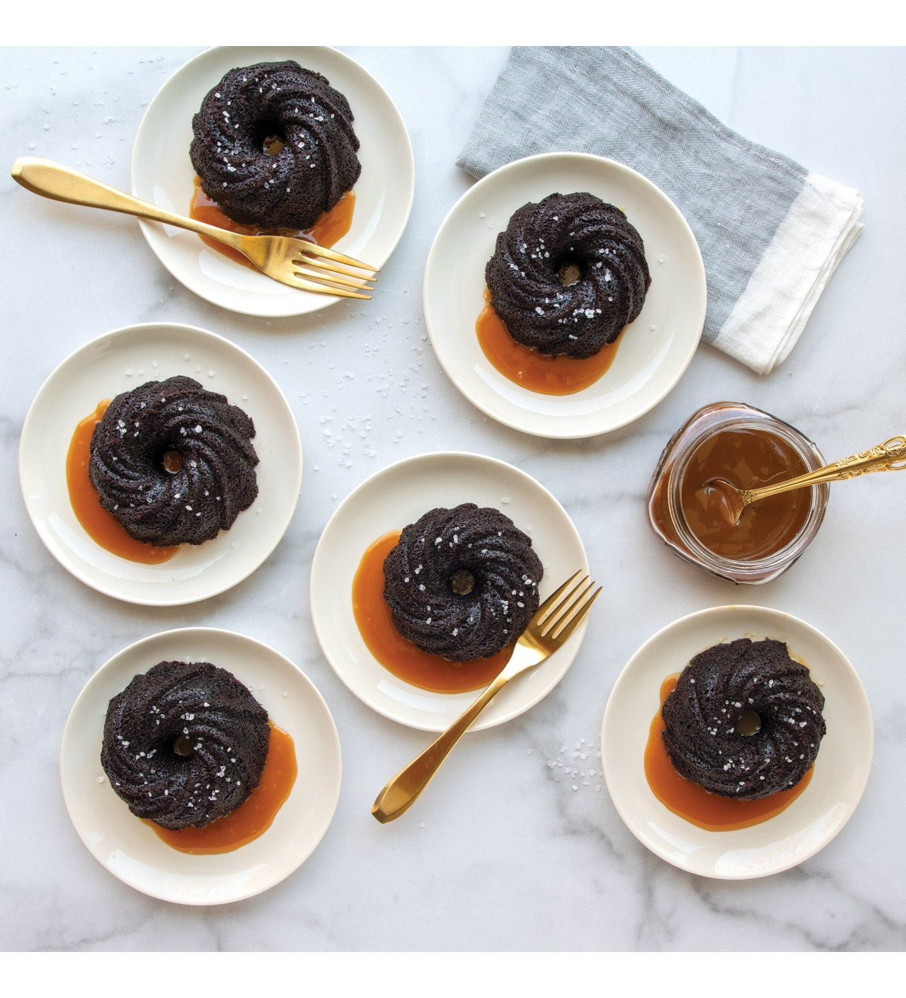 Perfecto para postres individuales, este molde swirl Bundtlette pan es duradero y seguirá dando excelentes resultados año tras año. No olvides seguir la regla de oro: lavar el molde Nordic Ware a mano sin objetos metálicos ni abrasivos para proteger el revestimiento.