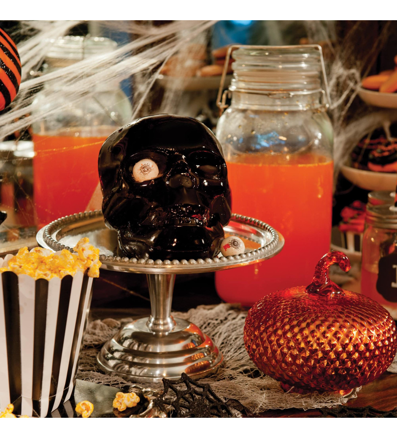 Para unir ambas mitades, puedes usar glaseado. Solo hace falta que añadas los últimos detalles a la calavera para que combine a la perfección con tu decoración de Halloween. Si algo es seguro, es que con el molde Halloween calavera Nordic Ware todos tendrán un hambre de espanto.