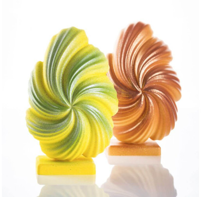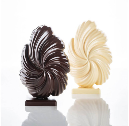 Usar el molde para chocolate es muy sencillo: una vez formadas las distintas piezas, bastará con dejarlas cristalizar en el refrigerador durante al menos 30 minutos. Tras el desmolde, las partes pueden ensamblarse fácilmente utilizando chocolate atemperado y spray frío.