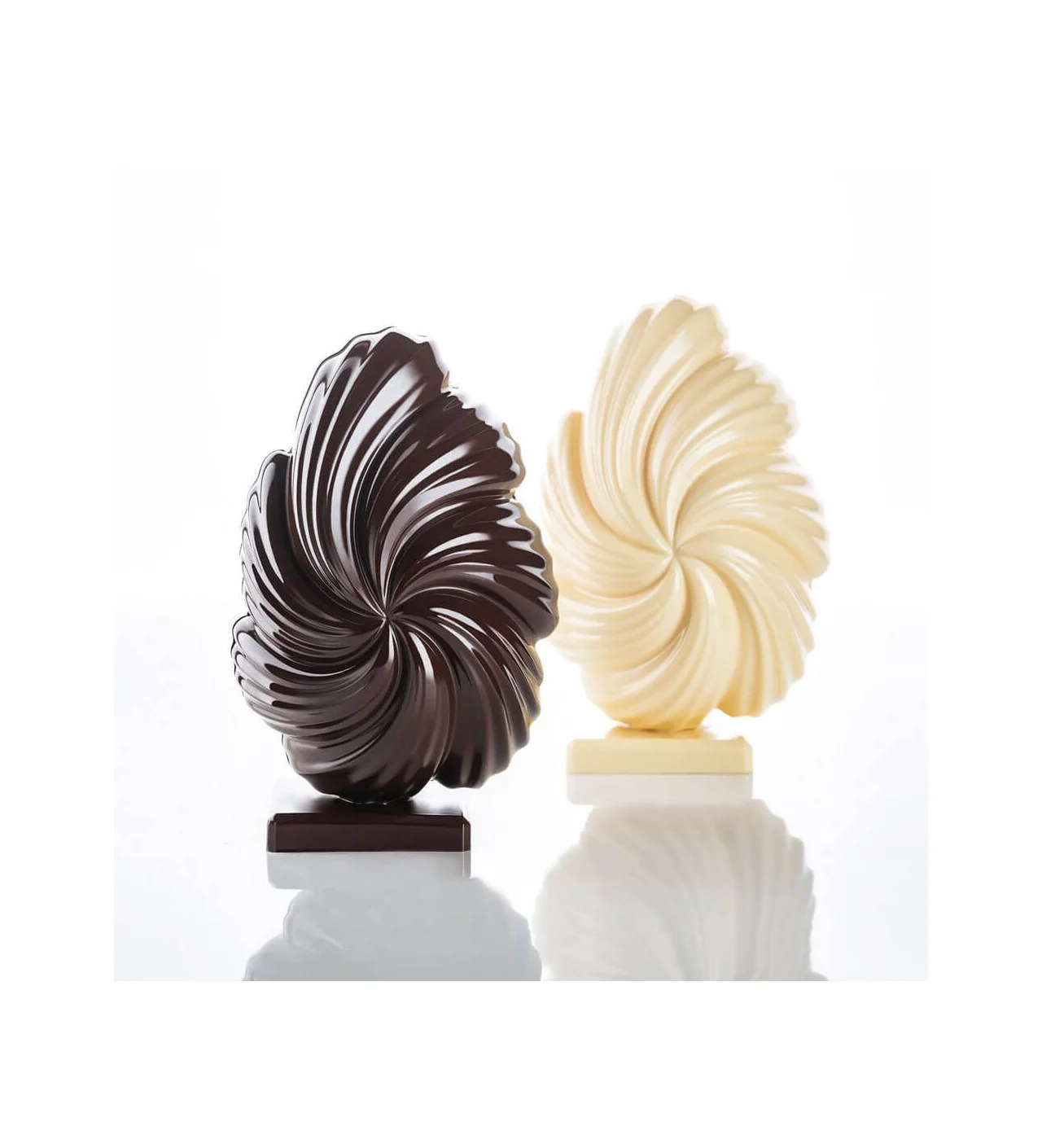 Zefiro, palabra italiana que evoca ligereza y delicadeza, da nombre a este sofisticado molde Pavoni. Prepara un auténtico remolino de sabor y elegancia para Pascua y haz soñar a todos los amantes del chocolate con el molde huevo torbellino. Su diseño singular y estético, inspirado en la forma del huevo, garantiza creaciones capaces de realzar cualquier celebración pascual.