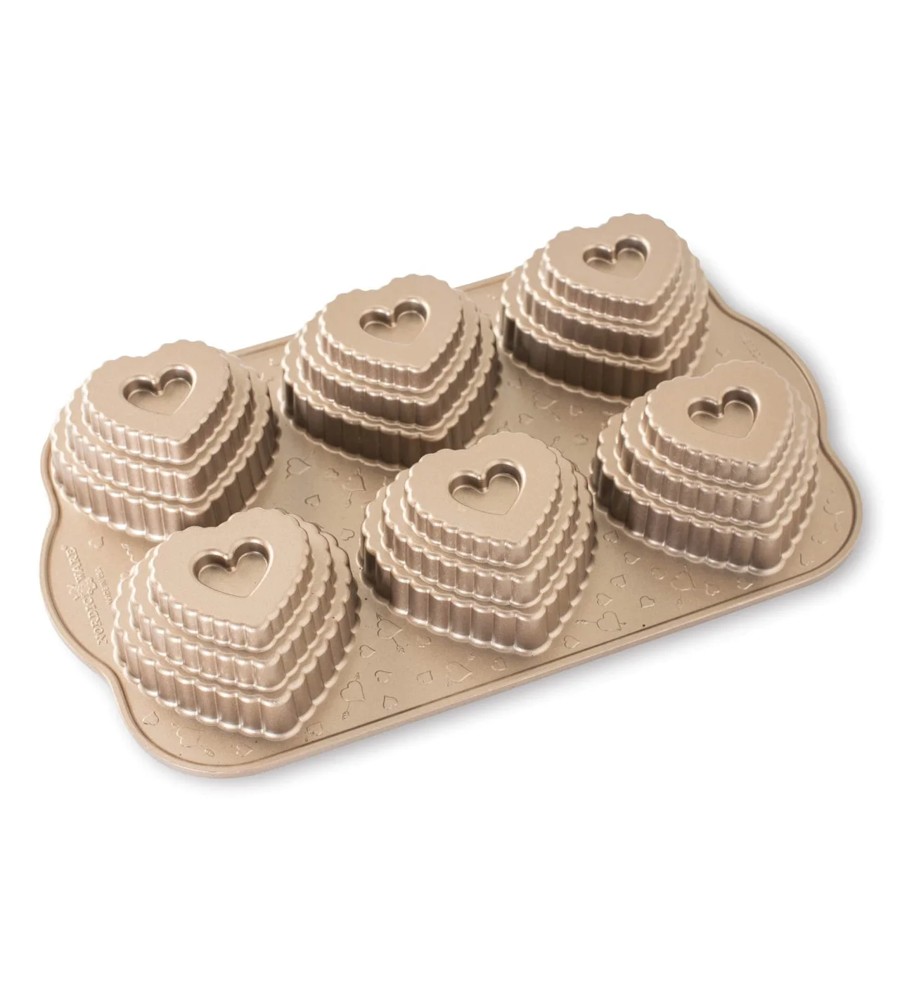 Molde Corazón para Bizcochos Tiered Hearts (x6) Toffee Nordic Ware