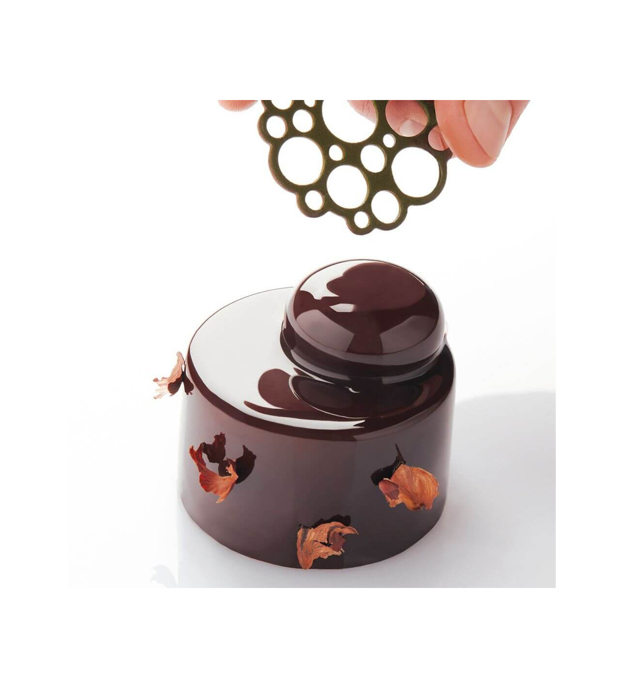 La decoración es parte integral de la cocina, y lo es aún más cuando es comestible. Con el molde Pavoni, tendrás todo lo necesario para elaborar decoraciones extraordinarias para tus platos tanto dulces como salados. Basta con llenar las 15 cavidades de este molde de silicona con crema, salsa, puré de frutas o incluso chocolate, así obtendrás decoraciones comestibles con un aspecto delicado y delicioso. Las cavidades tienen la forma de un conjunto de círculos, este molde silicona de la marca Pavoni es fácil de desmoldar.