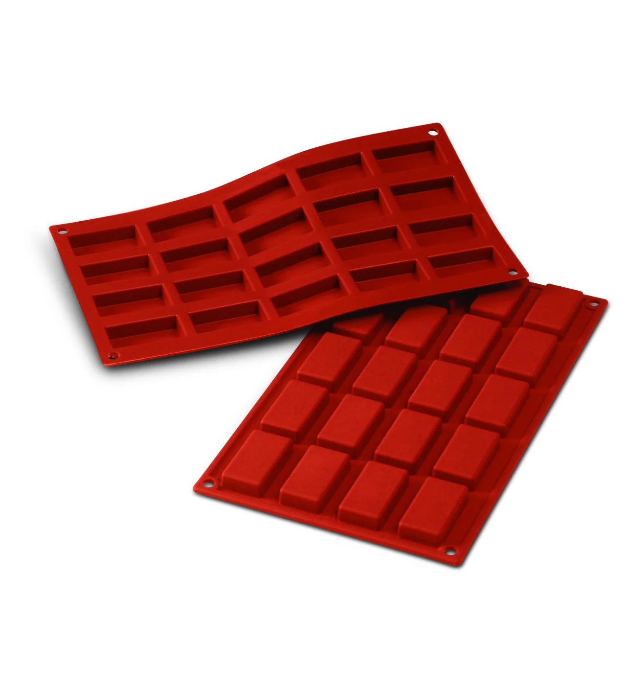 Este molde silicona rectangular es idóneo para deleitar el paladar de 18 a 20 comensales, pues tiene 20 cavidades.