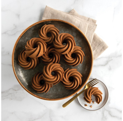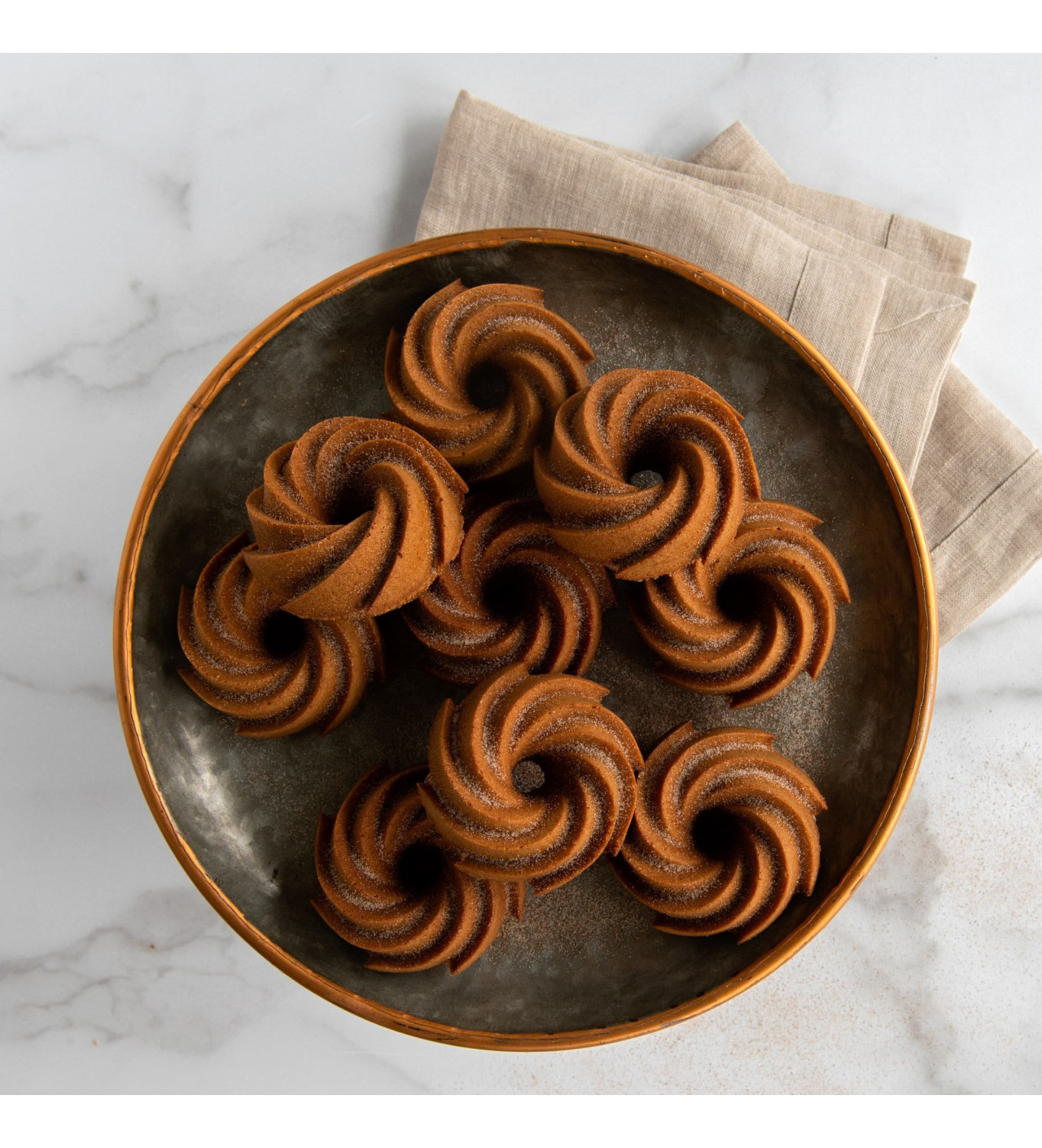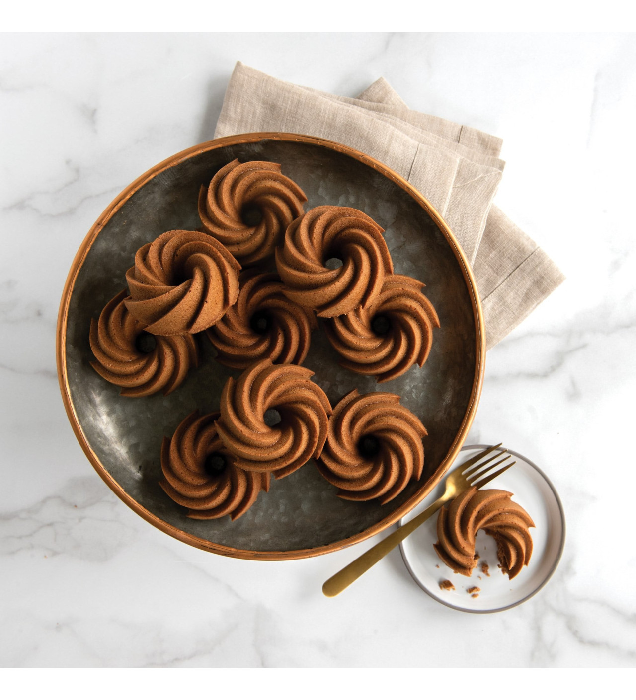 ¿Se te antoja algo dulce, pero no quieres complicarte con un bizcocho grande? Prepara porciones individuales de tus postres favoritos con un diseño llamativo e irresistible gracias al molde mini Bundt cake Heritage de Nordic Ware.