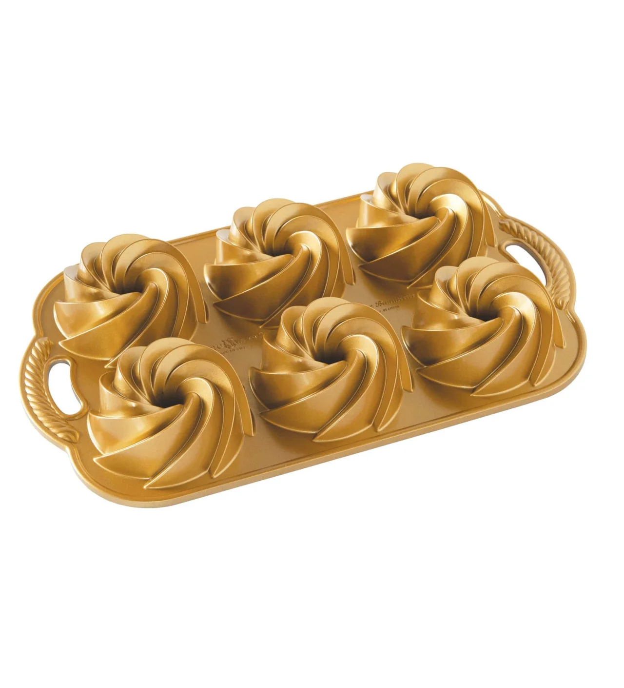 Características del Molde Heritage Bundtlette Pan (x6) Gold Nordic Ware: