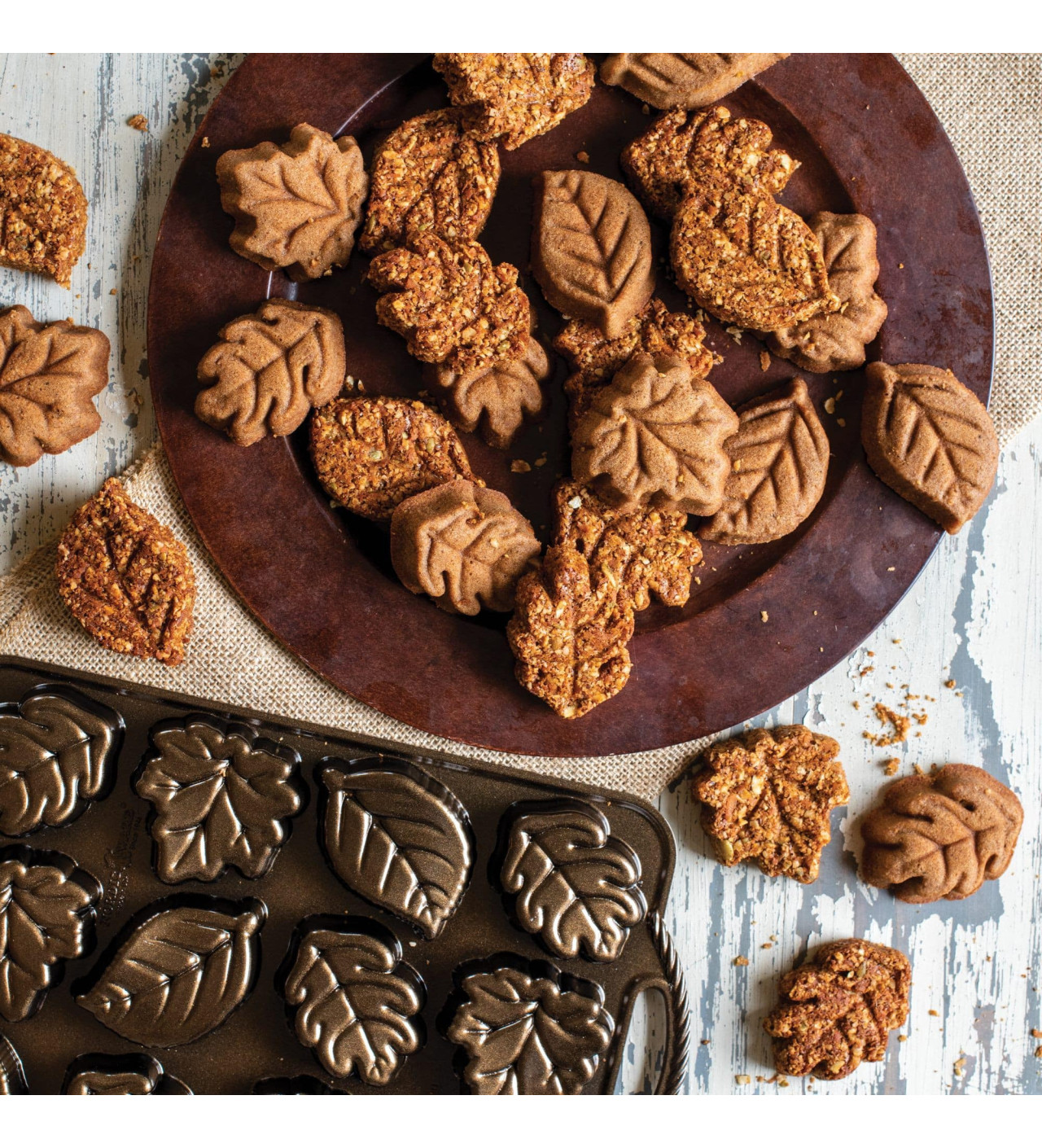 Molde Hojas de Otoño para Bizcochos (x12) Bronze Nordic Ware