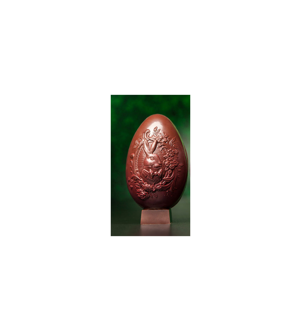 El molde huevo de chocolate mide 275 x 135 x 40 mm. Completamente hecho de policarbonato, facilita la cristalización del chocolate para que quede bien liso y brillante. Para descubrir los motivos del molde huevo de chocolate pinta la cavidad con la cobertura de chocolate atemperada con un pincel para uso alimentario. De este modo, no te perderás de ningún detalle y no habrá burbujas de aire. Deja que el chocolate se endurezca, luego repite la operación para obtener una corteza bien gruesa para desmoldarlo.